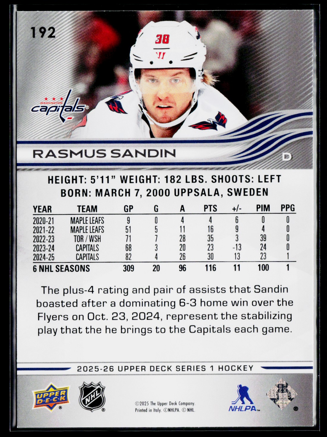| 2025-26 UPPER DECK RASMUS SANDIN WASHINGTON CAPITALS #192 |