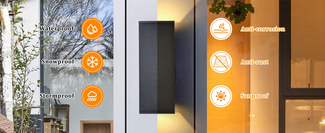 ✨✨Sturdy and durable build: This square outdoor wall light features a premium aluminum structure with a die-cast aluminum lamp body. It is robust, thick, corrosion-resistant, and rust-proof, capable of withstanding outdoor weather conditions such as rain and snow. With an IP65 waterproof rating, it ensures extra protection against water and dust ingress, guaranteeing long-term durability.