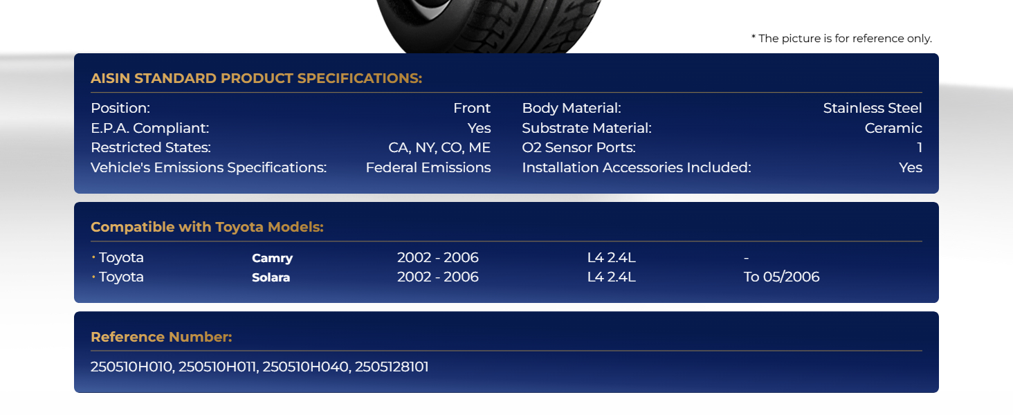 AISIN Front Catalytic Converter for Toyota Camry Solara 2002-2006 EPA Compliant