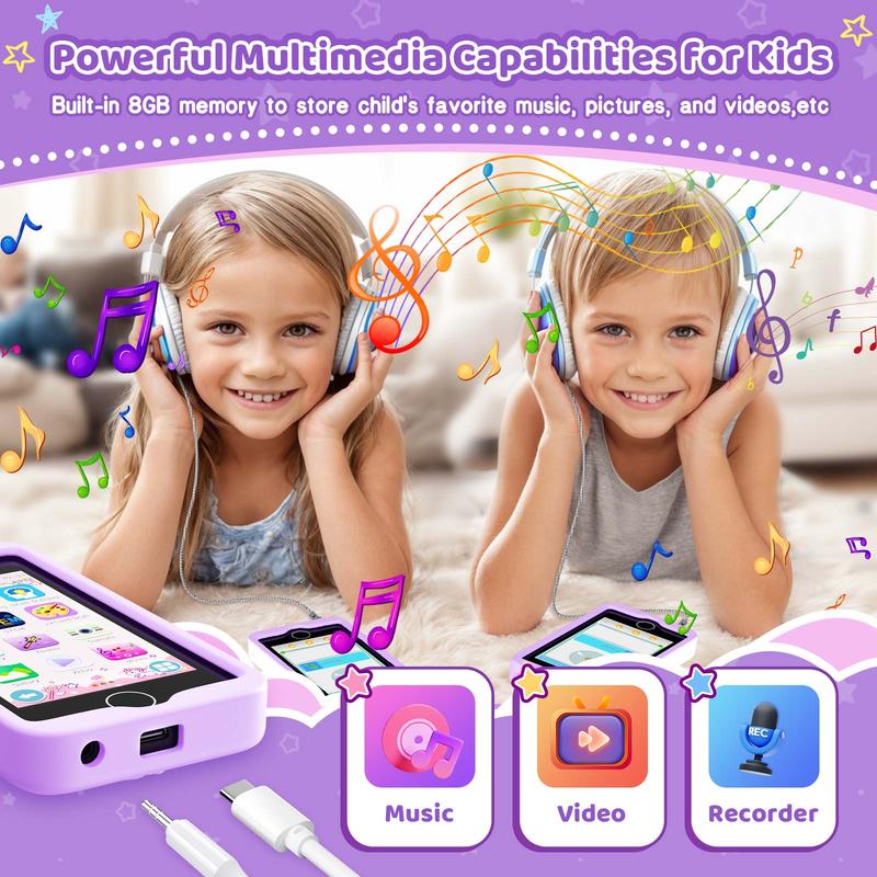 High-Quality Dual Cameras and IPS Display:Capture memorable moments with the dual cameras on this toddler phone for kids. The front camera features of the kids smartphone 300,000 pixels, while the rear camera of the kids toy phone boasts 2 million pixels with autofocus, ensuring clear and vibrant photos. The 4.0-inch IPS display with 480*800 pixels on the cell phone for kids protects your child's eyesight, providing a clear and comfortable viewing experience.