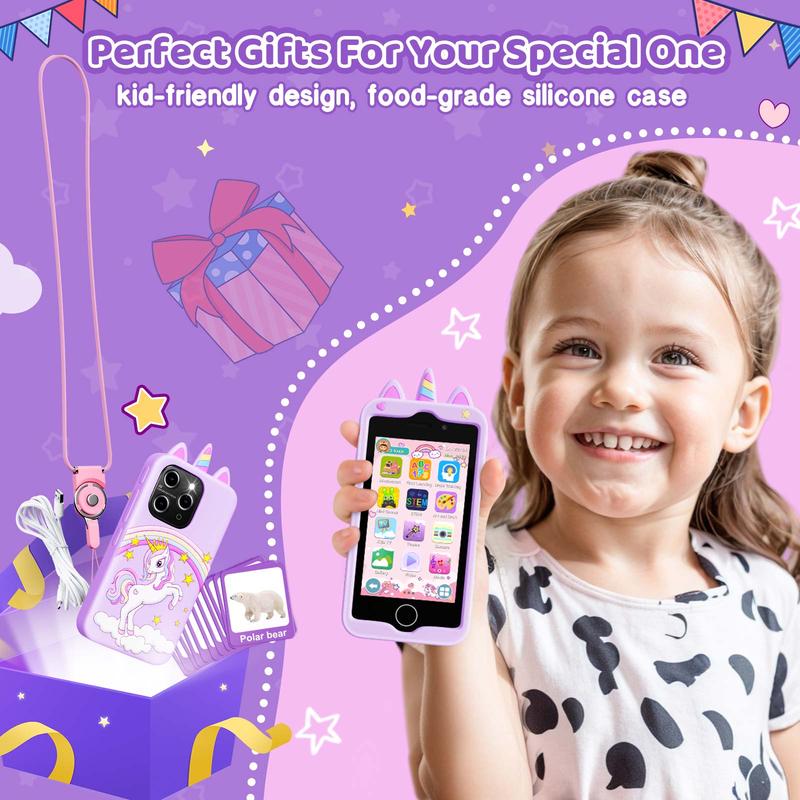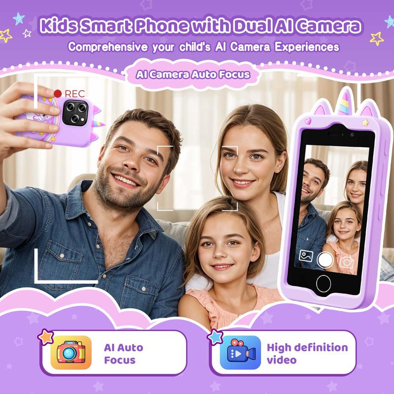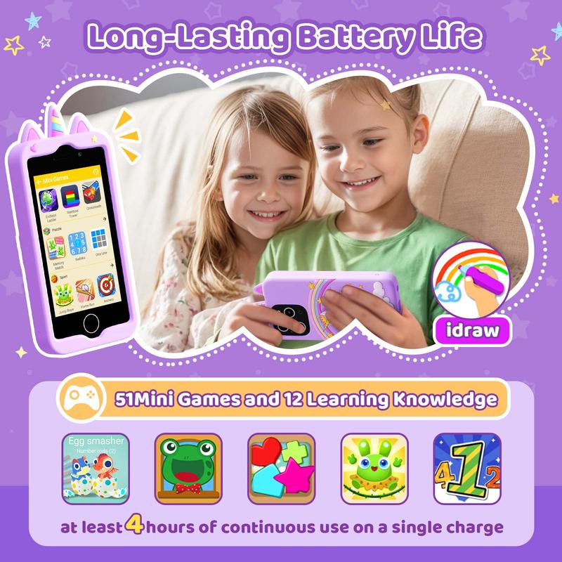 Long Battery Life, Ample Storage, and Safety: Enjoy extended usage with a built-in polymer lithium battery that ensures at least 4 hours of continuous use. The Kids Cell Phone Toy also comes with 8GB of internal memory, and supports external storage via a microSD card slot, providing ample space for more photos, and videos. Made from food-grade silicone, this Tiny Cam Kids Smart Phone for Girls ensures hygiene and safety for your child.