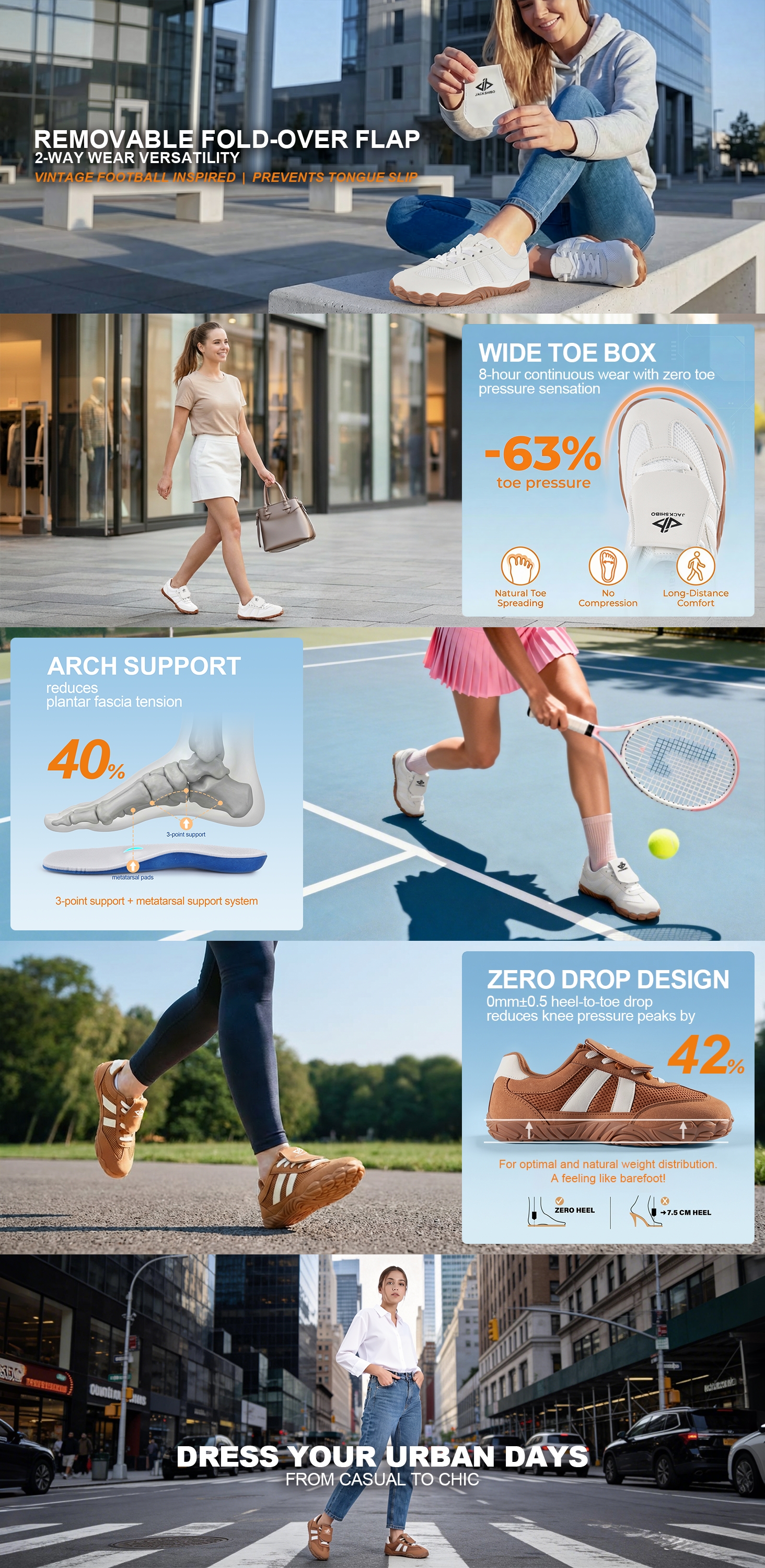 - Zero Drop Sole: The minimalist shoe featuring with zero-drop midsole, promotes natural posture and alleviates foot pressure, creating the sensation of walking on level ground for a comfortable and balanced wearing experience.