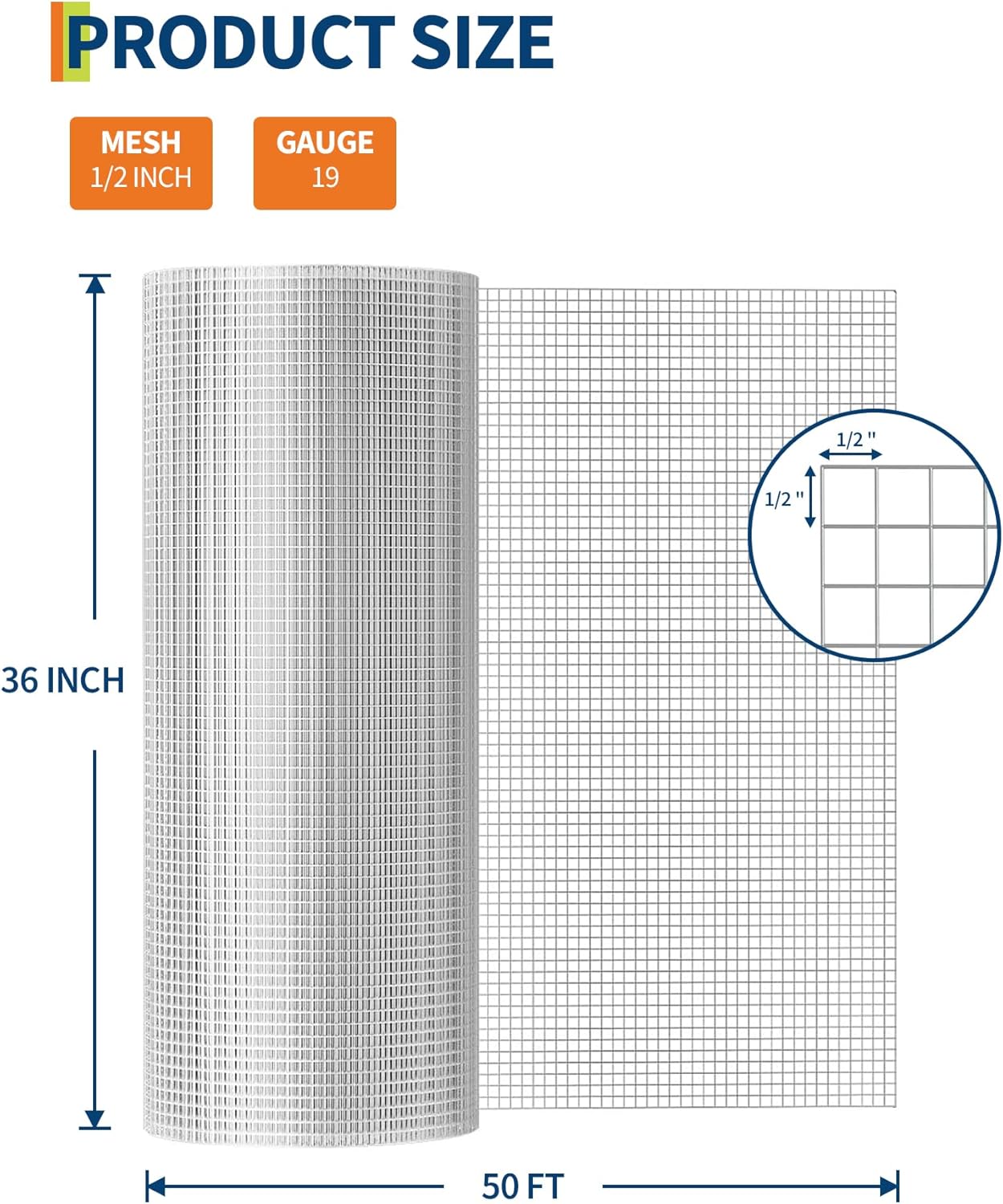 Robuster Schutz: 19-Gauge verzinkter Draht mit 1/2-Zoll-Maschenweite wehrt Schlangen, Marder und Schädlinge effektiv ab und schützt Hühner, Kaninchen und Gärten zuverlässig.