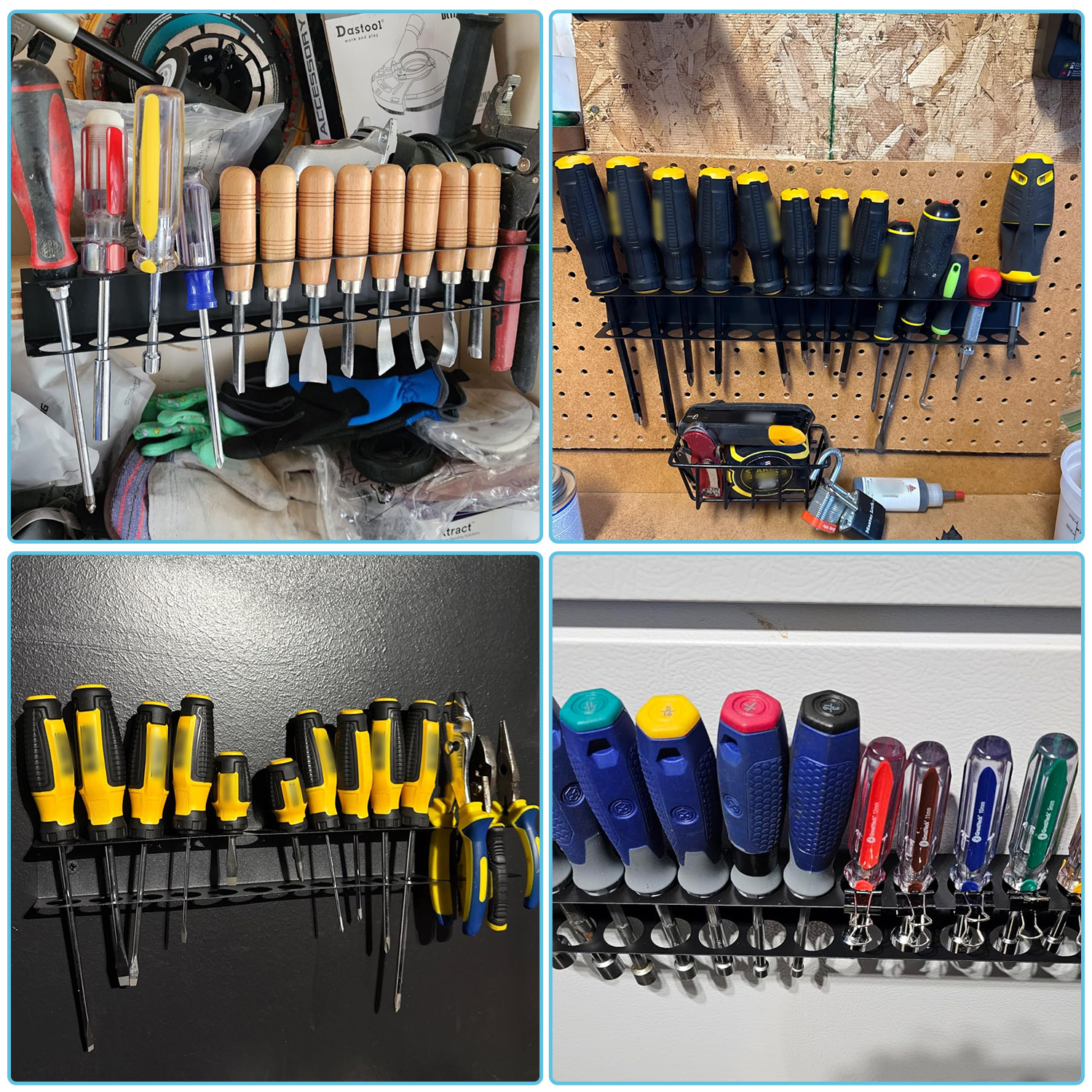 Space Save:The wall-mounted screw driver organizer are appropriate to organize your screwdrivers, pliers with minimal space. Vertical and hollow design helps you easily organize,quickly take out and use