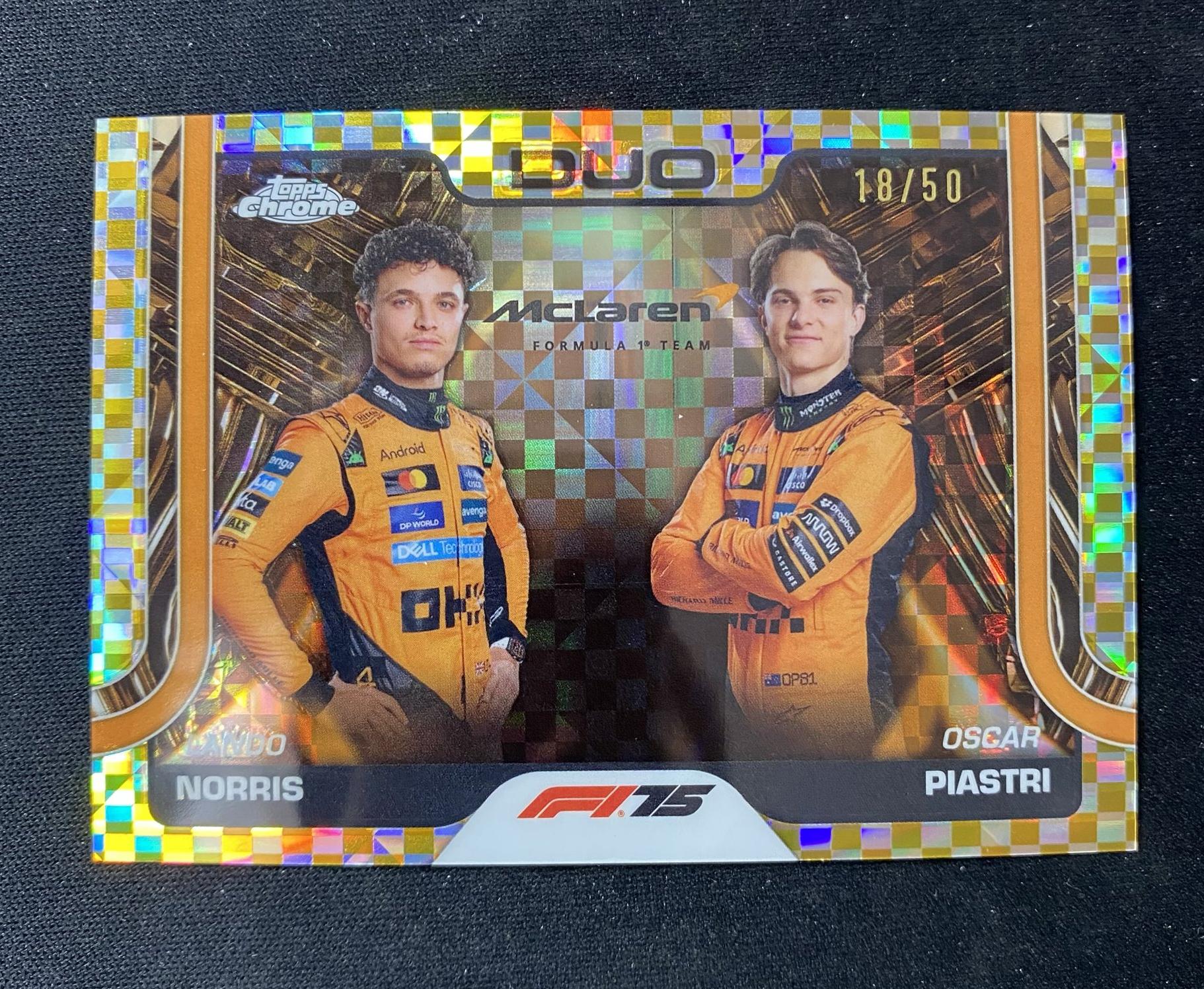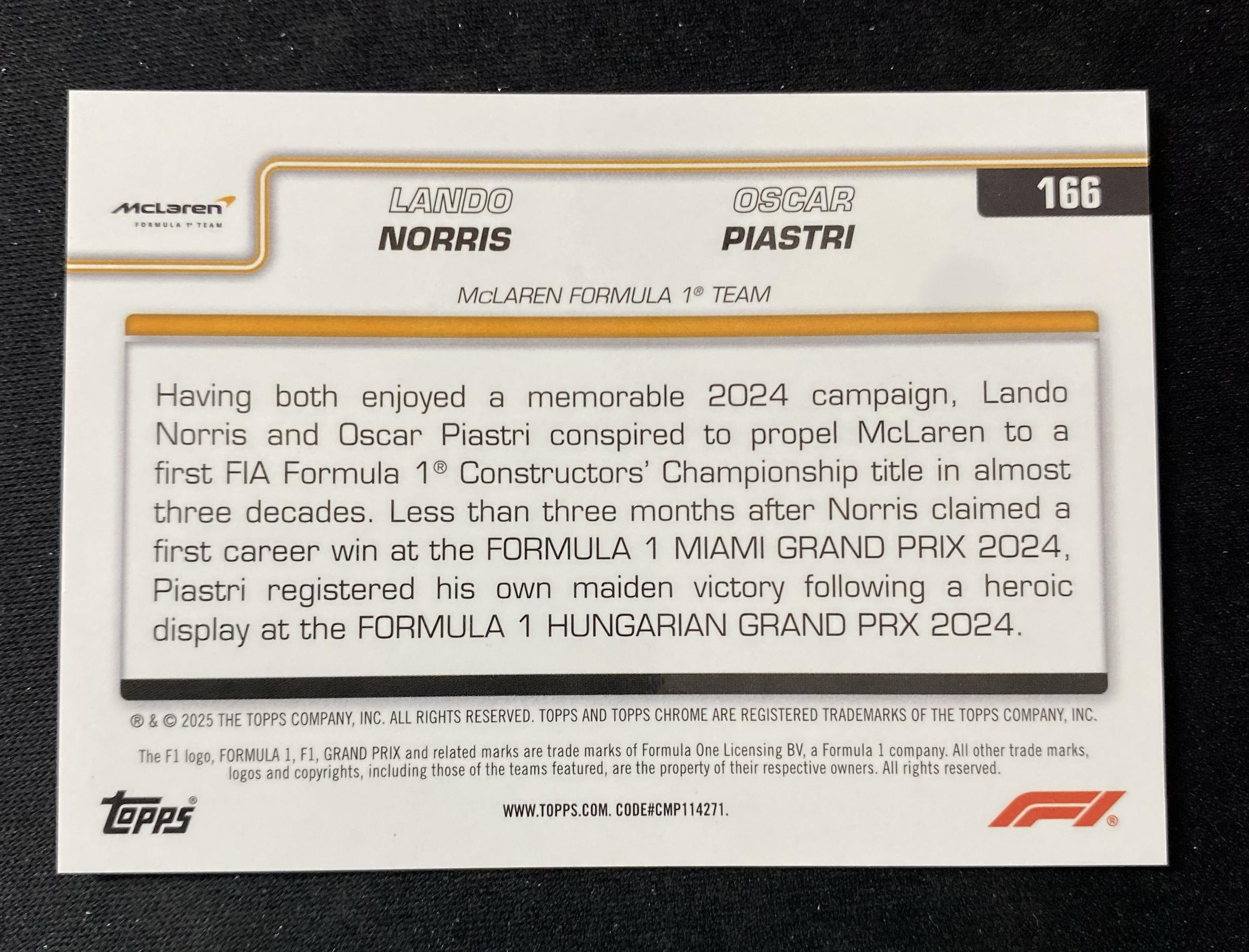 2025 Topps Chrome F1 75th Lando Norris/Oscar Piastri #166 Gold Checker Flag /50