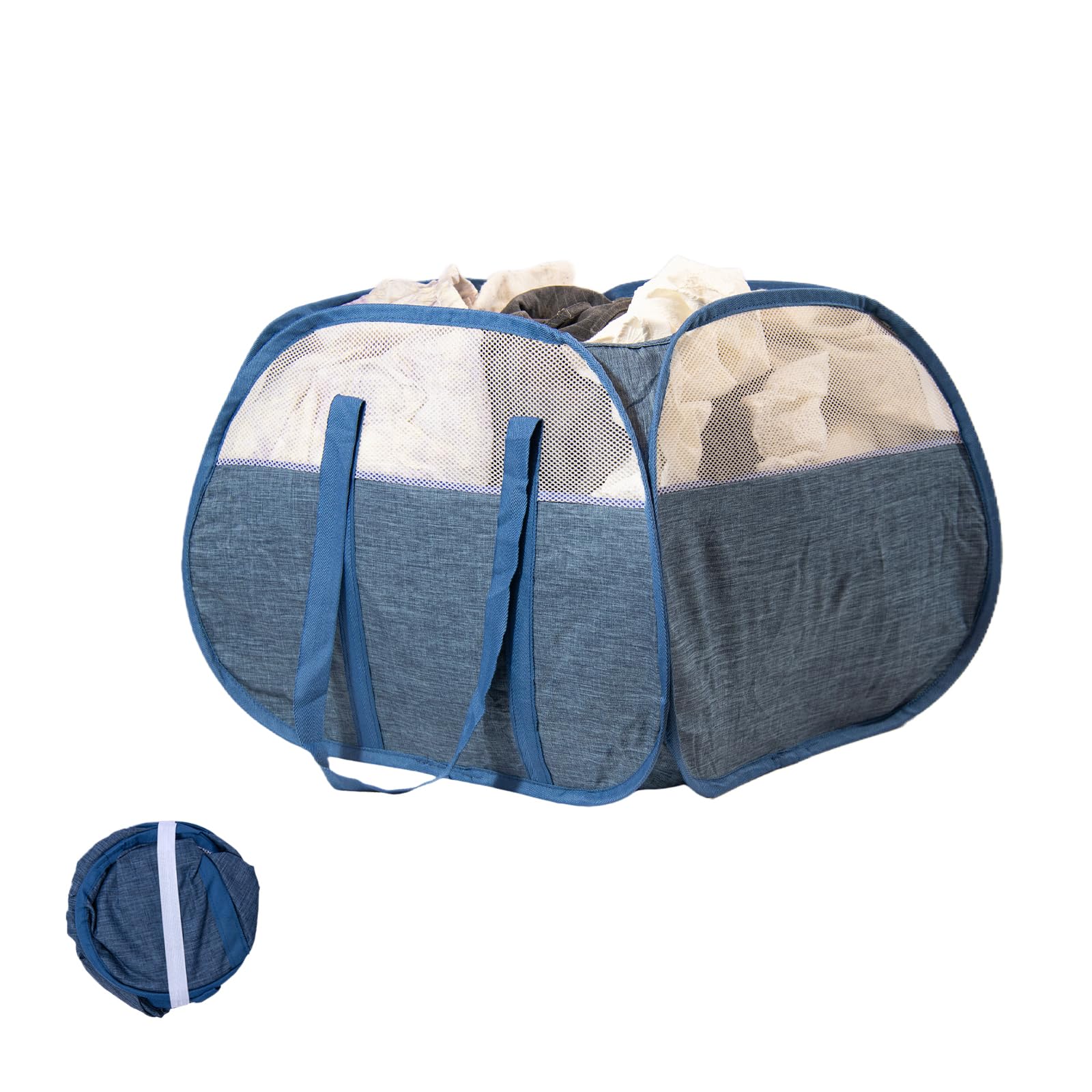 Collapsible Laundry Basket, 90L Foldable Pop-up Laundry Hamper with Reinforced Handles, Tear Proof Mesh Dirty Clothes Hamper for Laundry (Blue)