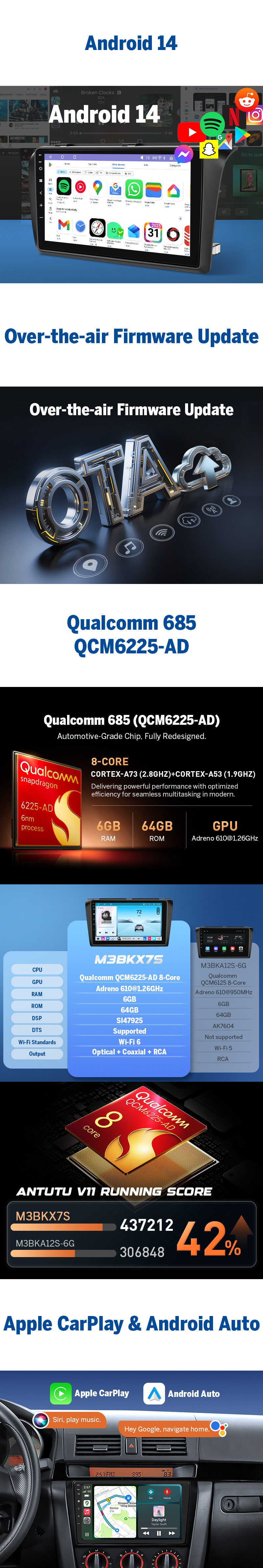 Full Factory Feature Retention – No warning lights, no compromises š Performance & System (Android 14) Built on a Qualcomm 685 (QCM6225-AD) platform, this unit delivers fast boot-up, stable multitasking, and long-term reliability. -