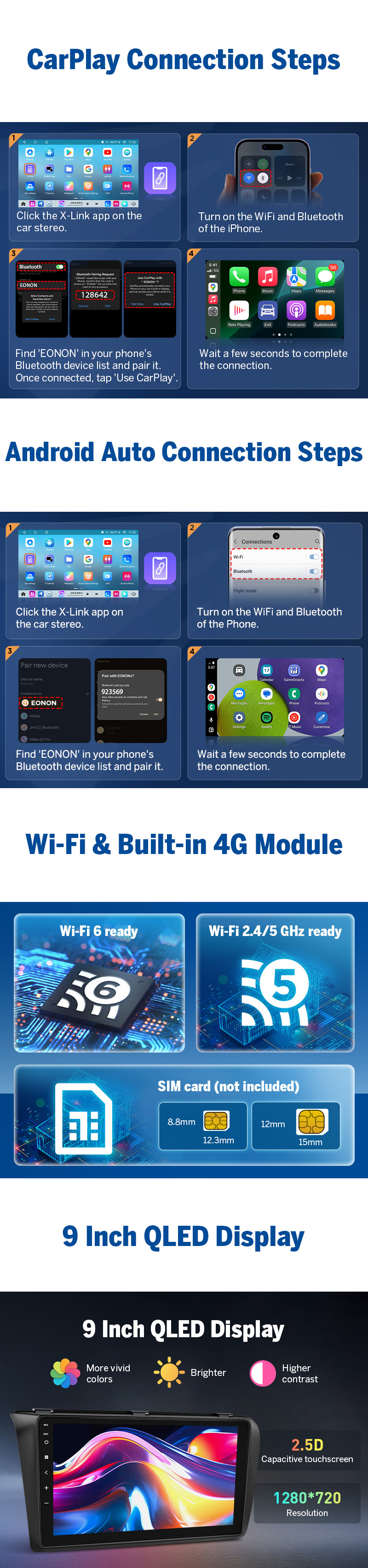 š„ Eonon M3BKX7S – Premium Android 14 Head Unit for Mazda 3 (2004–2009) 6GB RAM/64GB ROM | 9” QLED Display | Wireless CarPlay & Android Auto | 4G LTE | DSP Hi-Fi Audio | GPS Transform your Mazda 3 with a factory-fit smart infotainment system built for drivers who expect speed, sound quality, and flawless factory integration. This is a vehicle-specific, plug-and-play upgrade — no wiring cuts, no compromises. ā Core Benefits at a Glance -