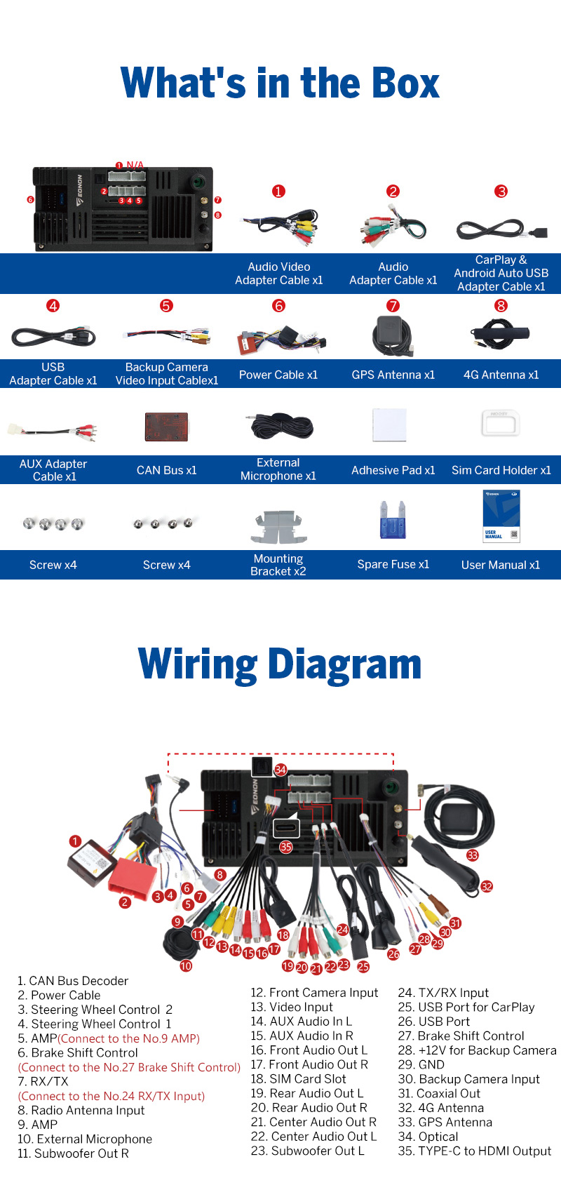- Built-in power amplifier: 4-channel audio output and 2 subwoofer audio output