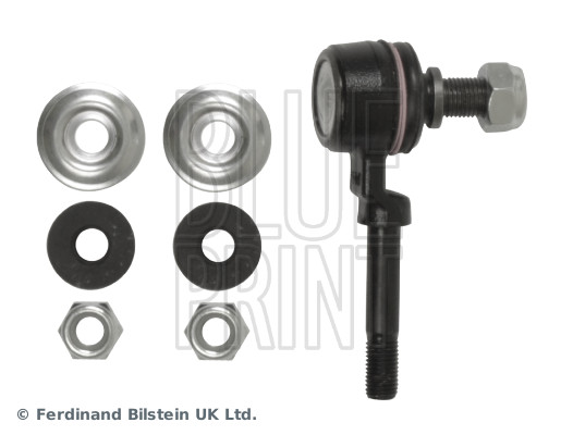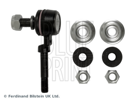 | Brand | Blue Print | | Placement on Vehicle | Front Axle Left, Front Axle Right | | Length | 85 mm | | Additional Information | with rubber mounts, with nuts | | Material | Steel | | Additional Information 2 | with washers | | Spanner Size | 19, 17 | | Rod/Strut | Coupling Rod | | Colour | Black | | External Thread Size | M12 x 1,25, M10 x 1,25 | | Type | Link/Coupling Rod, stabiliser bar |