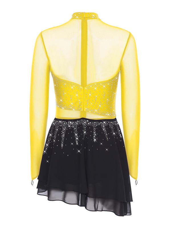 Women's Figure Skating Dress Mesh Modern Ballroom Dance Costumes High Low Dress