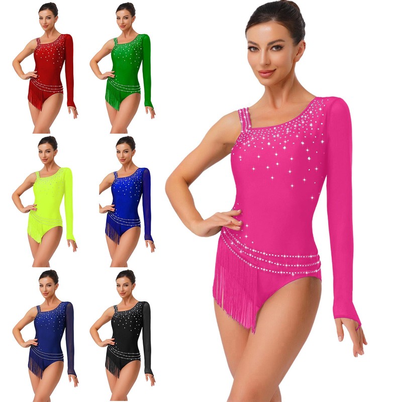 The long-sleeve design is a trendy element, adding elegance and warmth, making it suitable for various dance styles and performances.