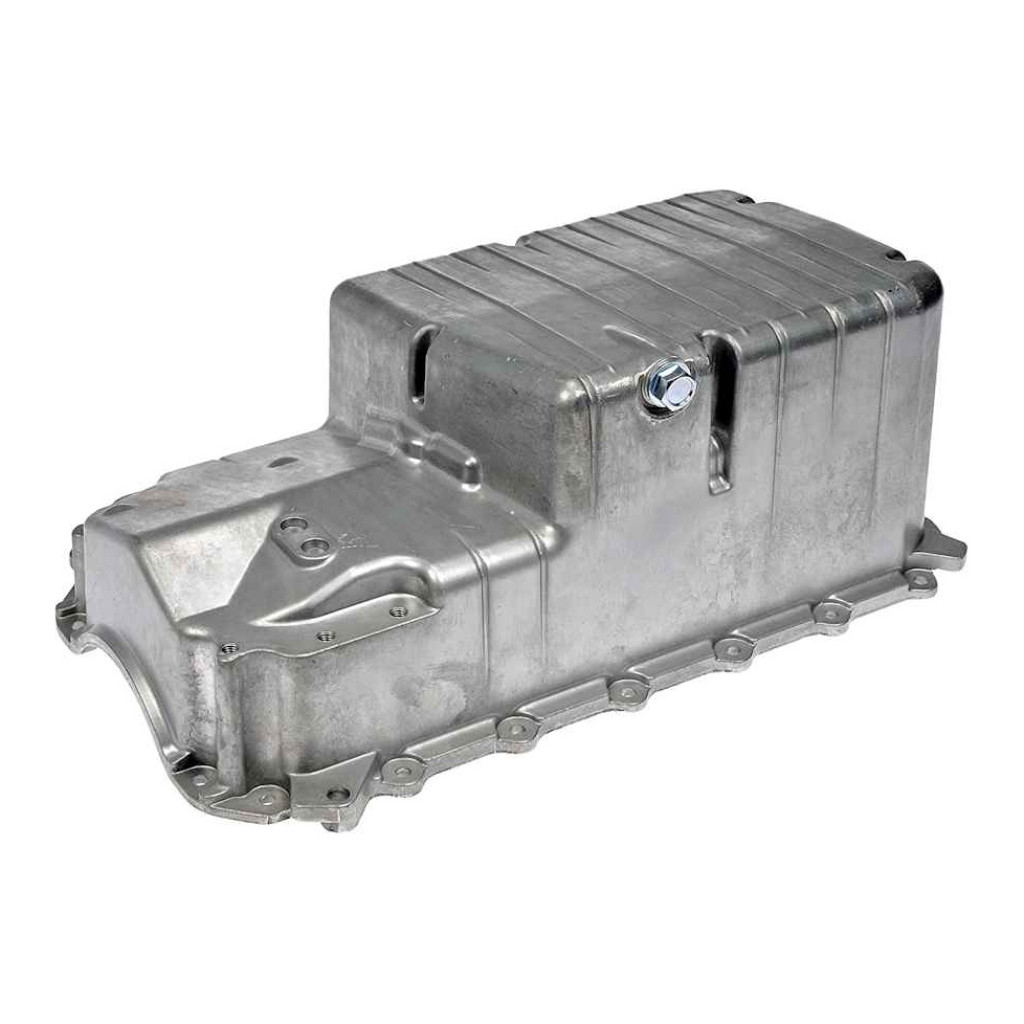 | Detail Product Information | Product Info: Part: Engine Oil Pan Material: Aluminum Finish: Metallic Color: Gray Kick Out Type Pan: No Baffled: No Capacity: 5 qt Crank Shaft Wiper Included: No Dipstick Port: No Drain Plug Included: Yes Drain Thread Size: M14 By 1.5 Engine Oil Cooler Return Fitting: No Gasket Or Seal Included: No Installation Hardware Included: No Maximum Depth: 6.5 Maximum Width: 9.5 inches Packaging Type: Box Pickup Included: No Sump Location: Center Package Contents: Oil Pan Package Quantity: 1