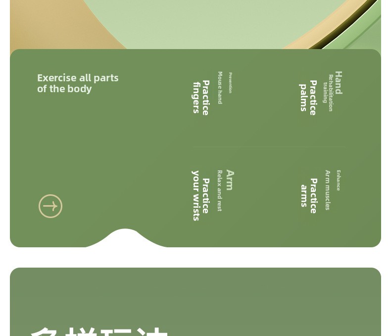 Strength Training: Designed to enhance finger, wrist, and arm muscle strength with varying resistance levels (20-80 lbs).