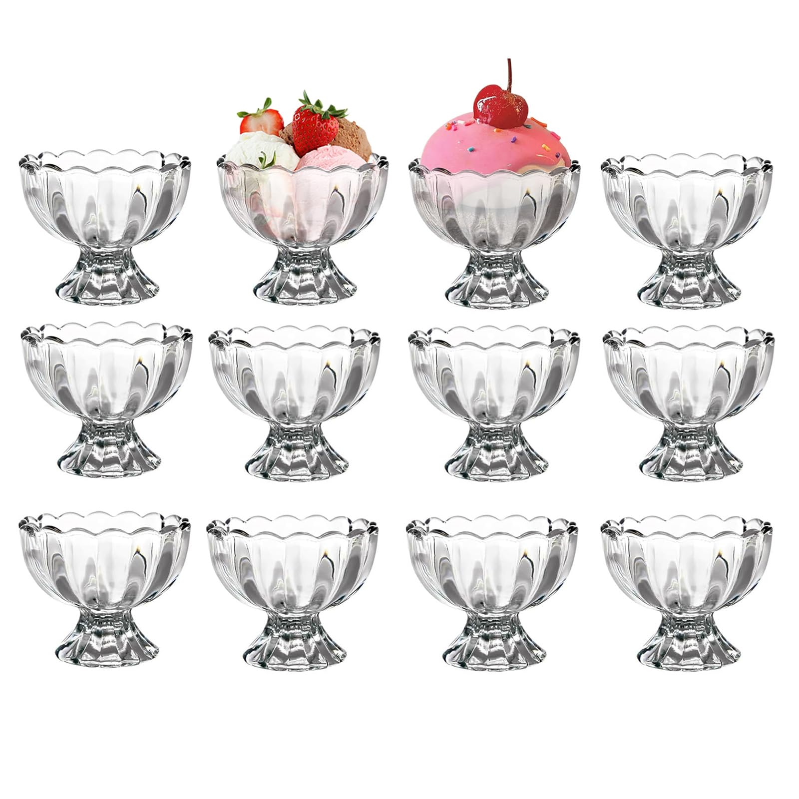【Use】: These glass dessert bowls contain a capacity of 6 fluid ounces and can be used for ice cream, small fruits, sorbet, yogurt, sundaes, etc., providing the perfect single-serve size that is both satisfying and non-greasy.