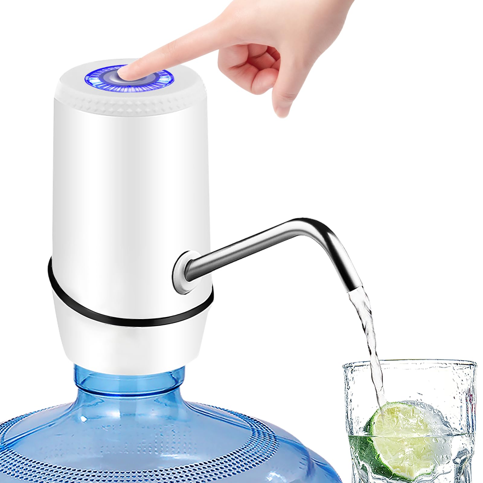 [One-Button Operation is Simpler] - The installation of the water pump for 5 gallon jug only requires four simple operations,and finally fix the water bottle pump on the bottle mouth.When you want to drink water, just press the button on the top and you will get pure and sweet water. To prevent water waste, the water pump will automatically stop after 60 seconds. If you need to keep the water flowing, just press and hold the button for 3 seconds.