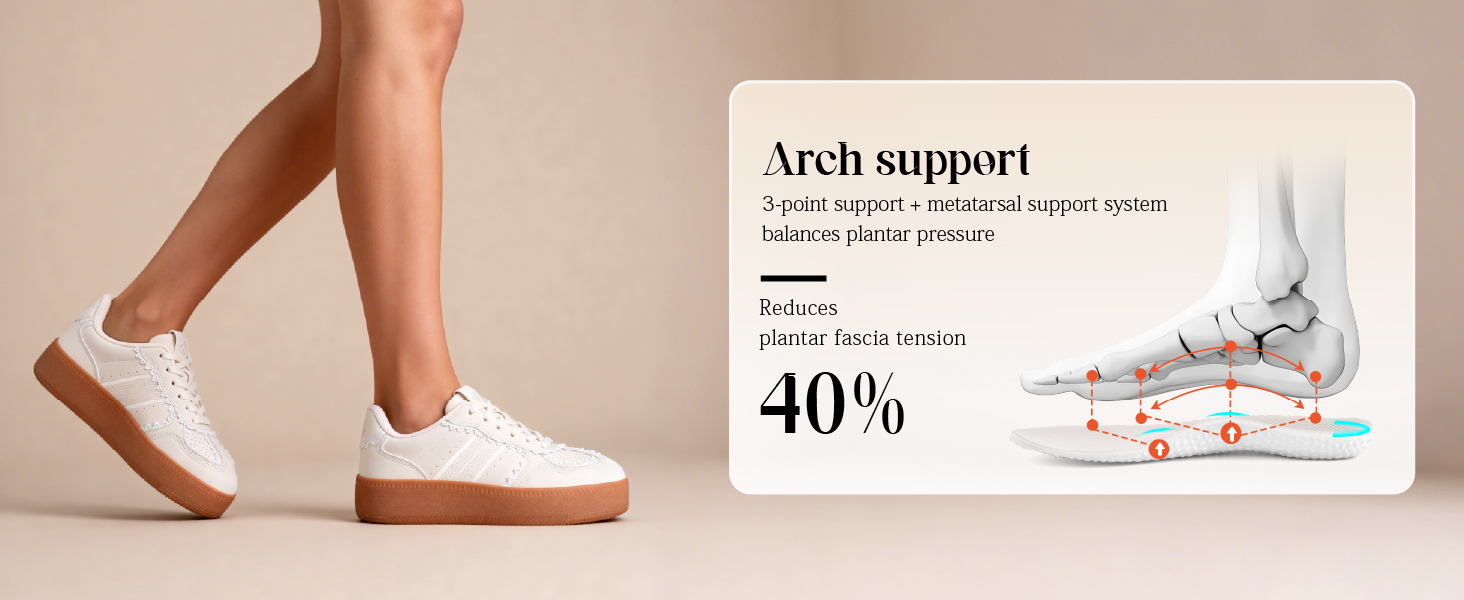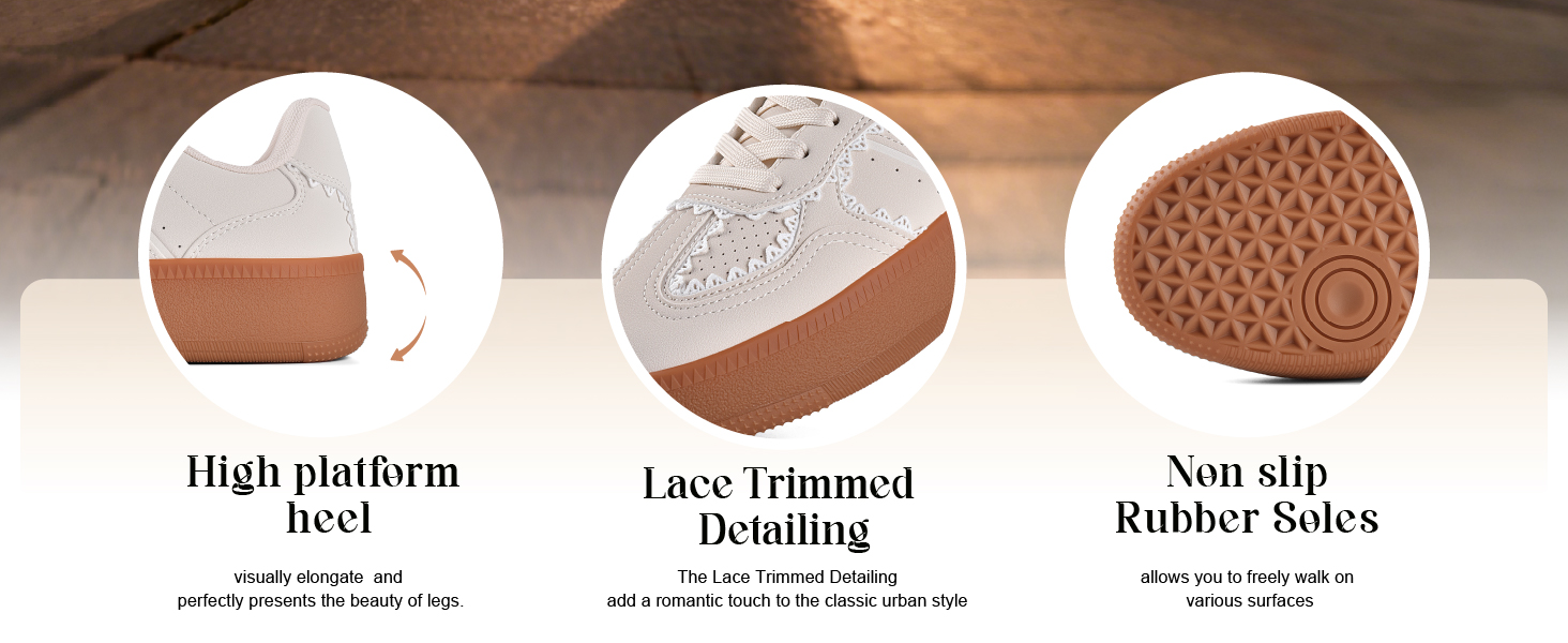 - Non-Slip Rubber Outsole: These stylish women's sneakers feature a sturdy yet flexible synthetic rubber outsole for exceptional durability. Engineered for high-frequency daily wear, it minimizes ground impact and resists deformation for long-lasting performance.