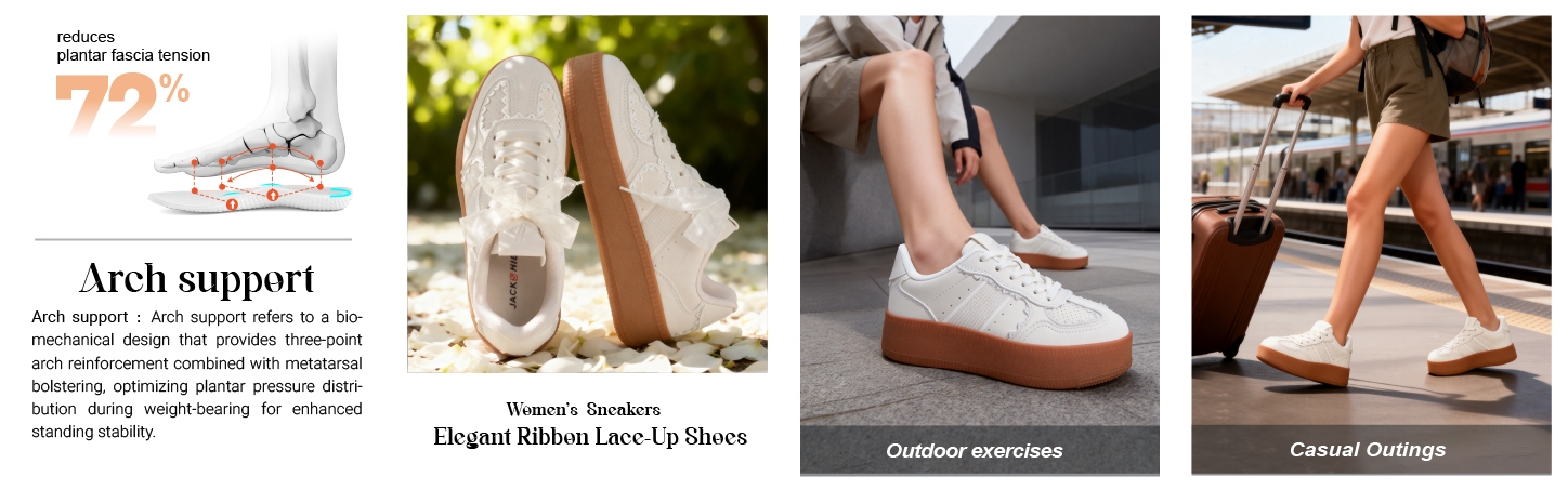 - Dual-Mode Adjustable Lacing System: These women's tennis shoes offer two signature lace options—classic cotton laces and soft ribbon laces—seamlessly merging style and practicality.