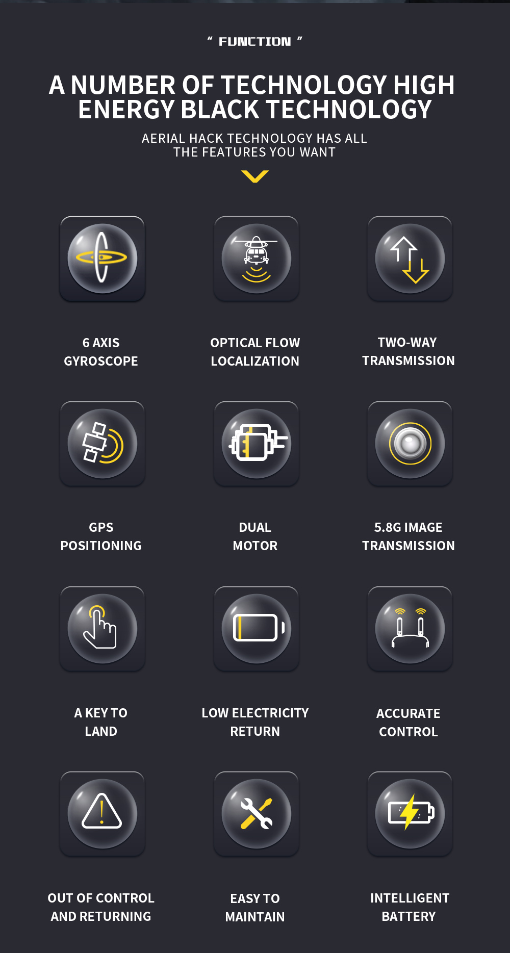 4. Der Propeller wurde nach aerodynamischen Prinzipien entworfen und liefert sowohl starke Schubkraft als auch hohe Flugstabilität. Er zeichnet sich durch hohe Effizienz, geringen Stromverbrauch und eine lange Flugzeit aus. Die Rotorblätter bestehen aus einem Verbundwerkstoff aus Nylon und Kohlefaser, der sich durch hohe Festigkeit, Zähigkeit, Schlagfestigkeit, Formstabilität und Langlebigkeit auszeichnet.