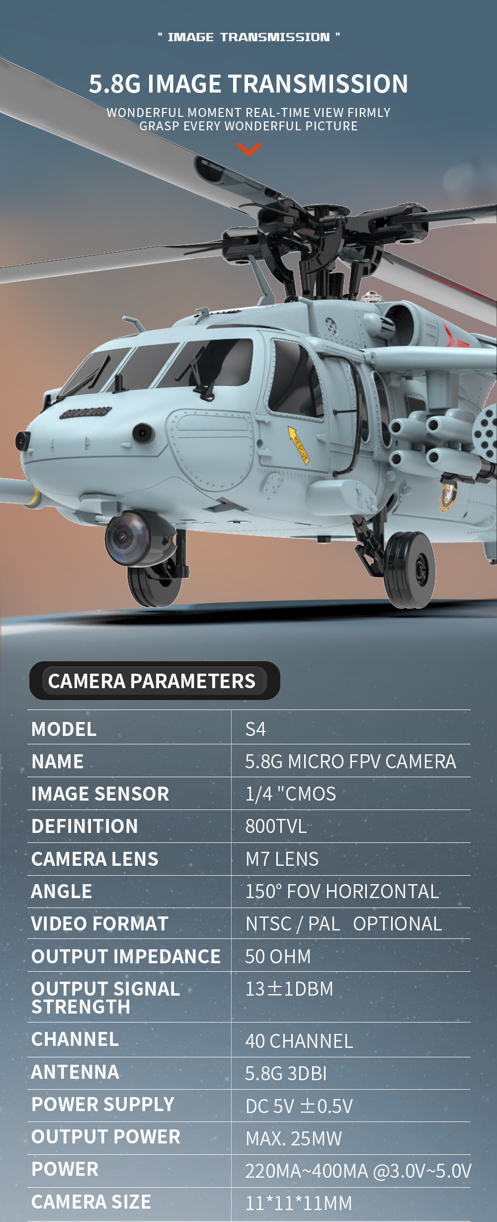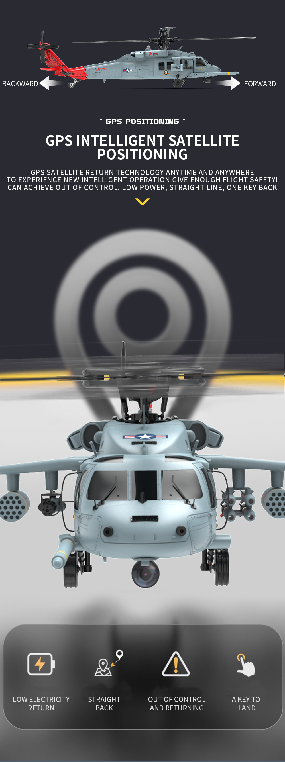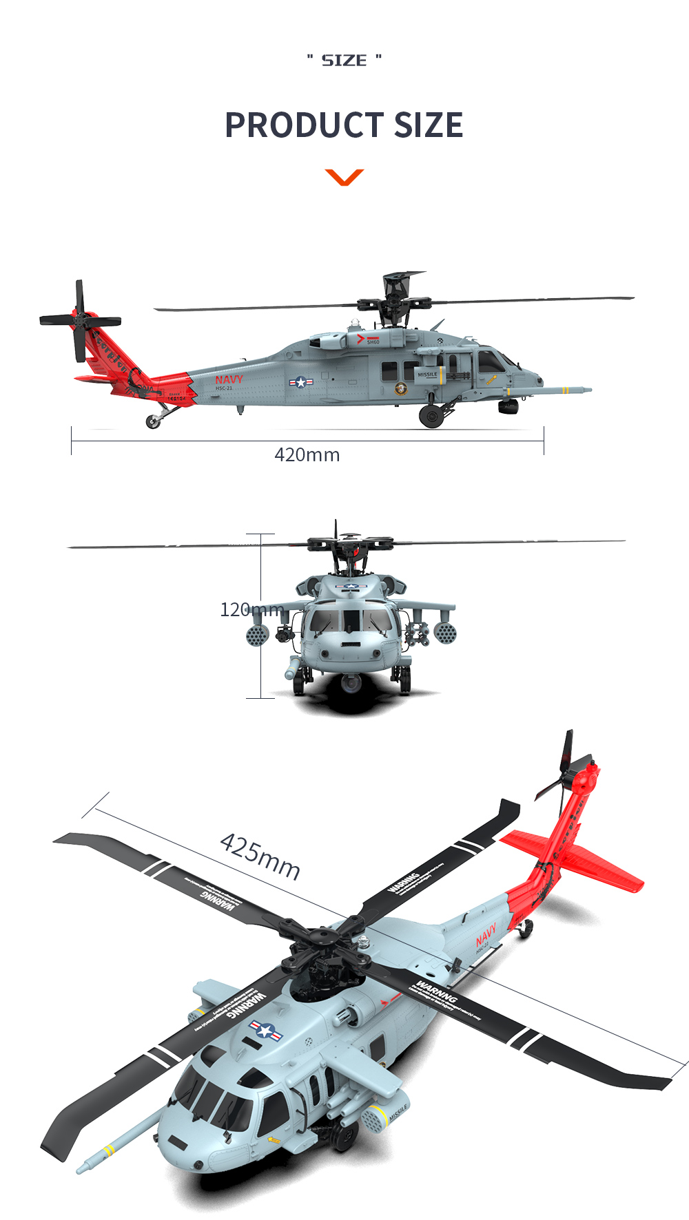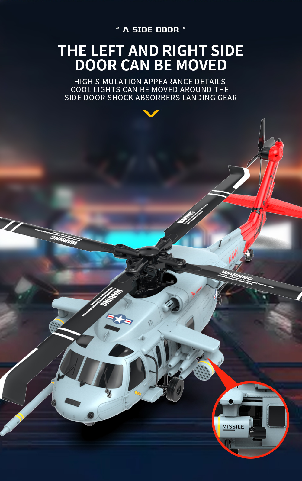 1. Basierend auf dem US-Hubschrauber SH60 Black Hawk, verfügt das Modell über einen Maßstab von 1:47 und zeichnet sich durch hochdetaillierte, realistische Außendetails, eine coole Beleuchtung, bewegliche Seitentüren sowie ein stoßdämpfendes Fahrwerk aus.