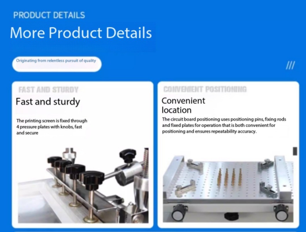 Manueller Betrieb: Dies sind keine automatischen oder halb‑automatischen Druckmaschinen. Druckgeschwindigkeit, Farbauftrag und Rakelzug werden vom Bediener kontrolliert.