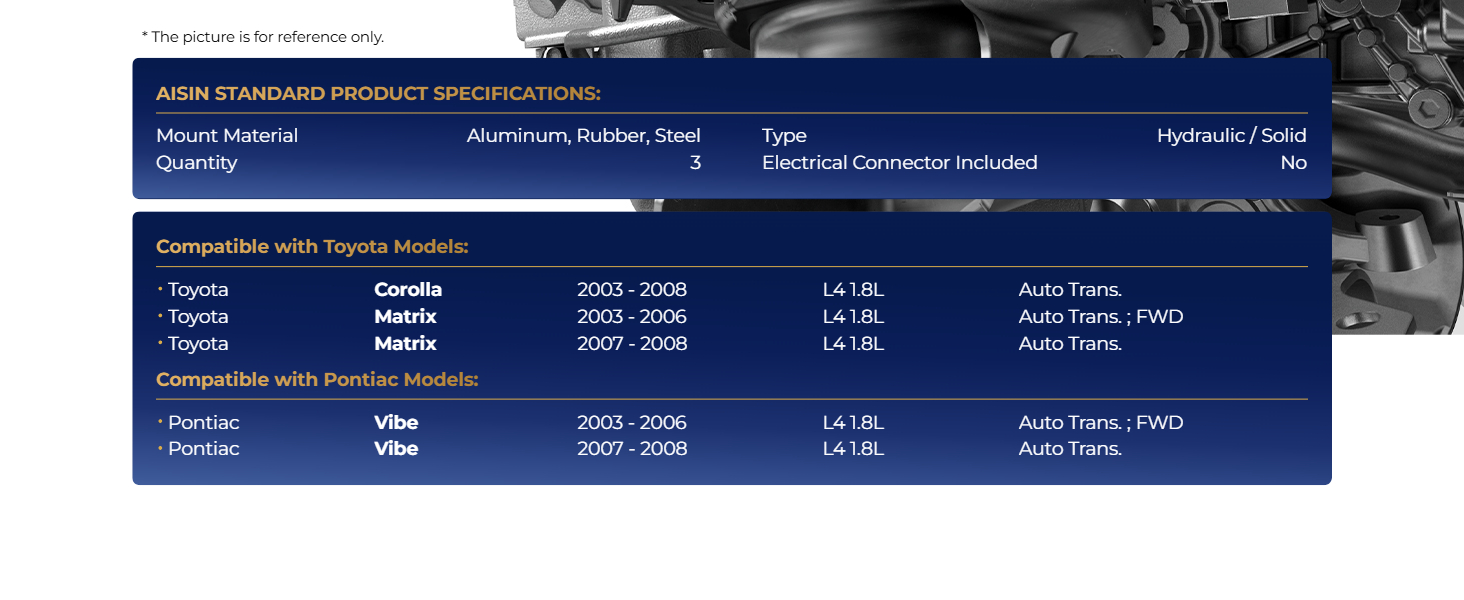 AISIN 3x Engine Motor Mount for Toyota Corolla Matrix Pontiac Vibe 2003-2008