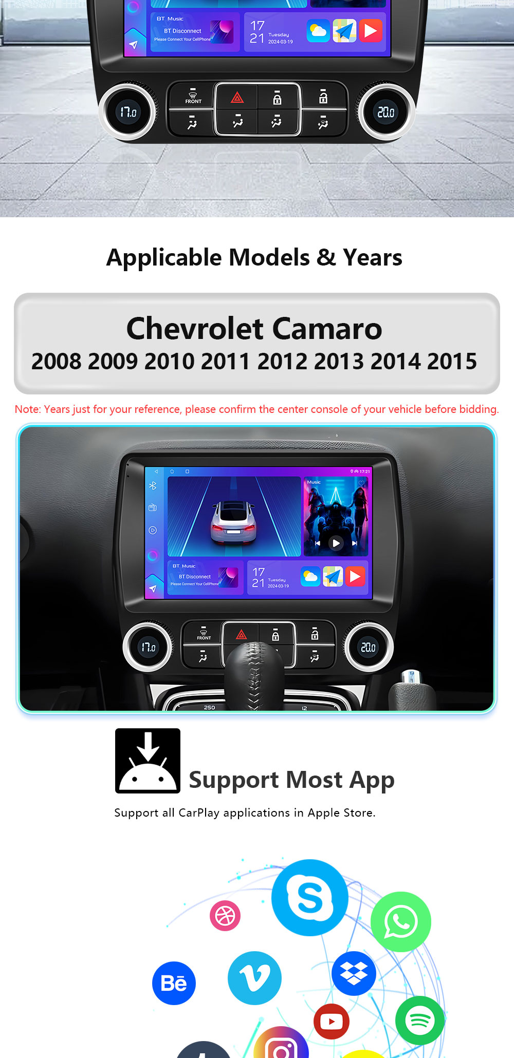 ●Wireless Carplay: You can choose wired connection or wireless connection to carplay, connect to Apple mobile phone, access mobile phone address book, mail, notification, map navigation, music, video and other information, and realize voice control.