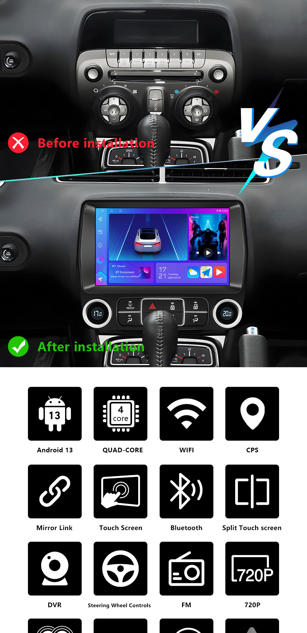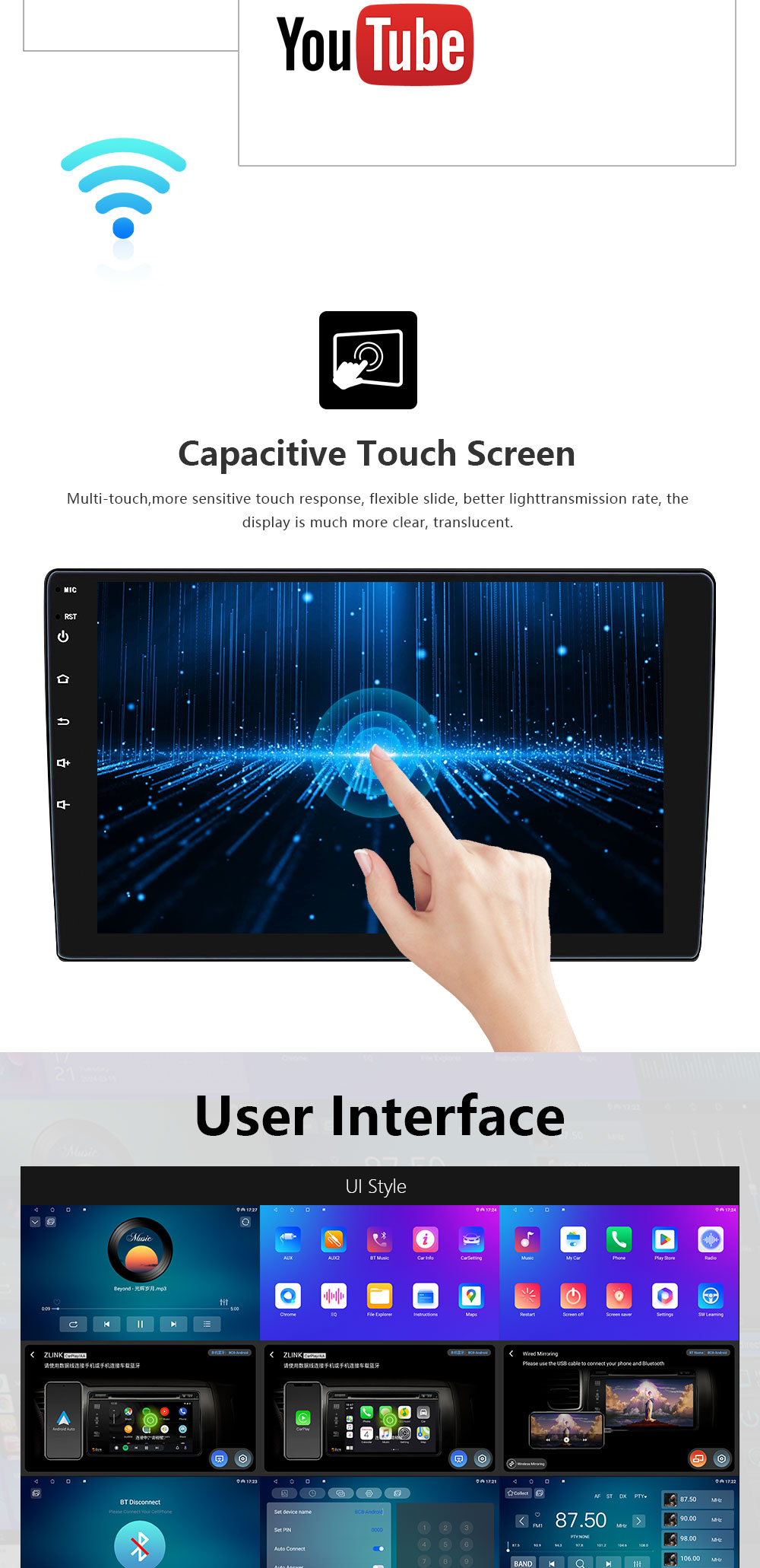 ●High definition 1080P: Full capacitance touch screen for easy operation, well designed user interface for car only