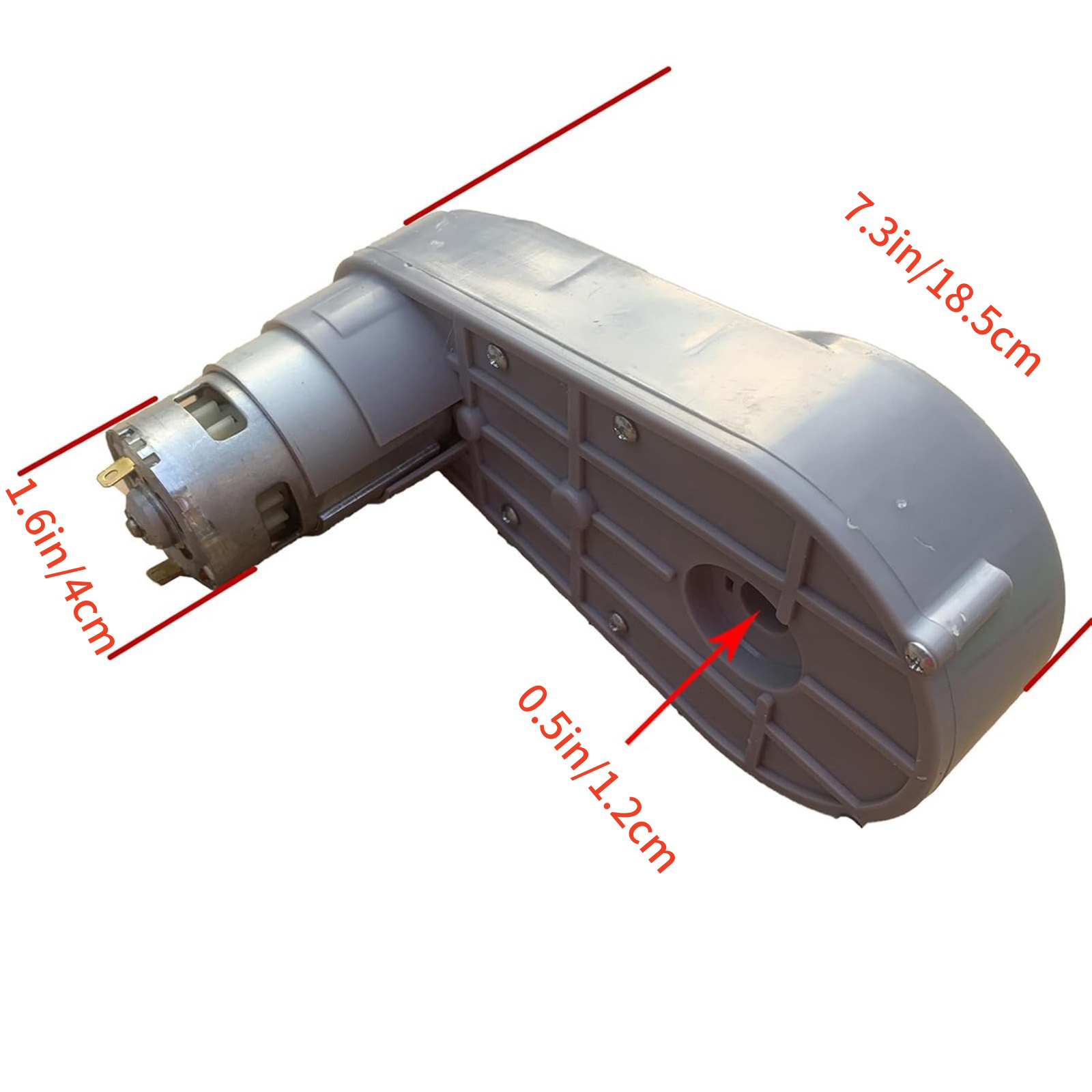 2. 18V DC Motor Engine For Power Wheel Ride On Cars Upgrade. When 24V Power Supply, Power Is 280W, And The Gearbox Outputs 360RPM Per Minute. When 18V Power Supply, The Power Is 200W, And The Gearbox Outputs 270RPM Per Minute. When 12V Power Supply, The Gearbox Outputs 180RPM Per Minute