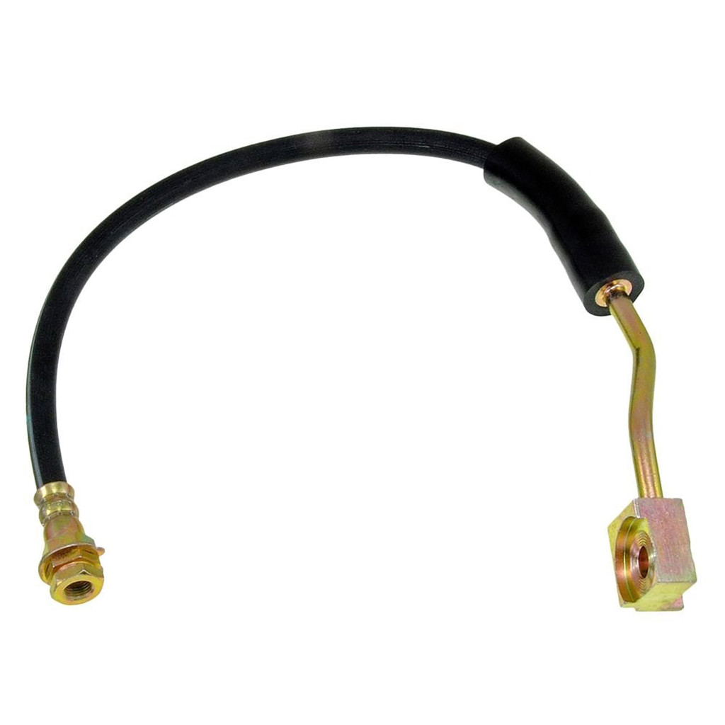 | Detail Product Information | Product Info: - Part: Brake Hydraulic Hose - End 1 Fitting Material: Treated Steel - Color: Black - Describe Type: Flexible Hose - Axis 1 Length: 15.25 inches - Bracket Included: No - DOT Approved: Yes - End 1 Fitting Type: Banjo - End 1 Thread Size: 0.38 inches - End 2 Fitting Inside Diameter: 3/8 inches-24 - End 2 Fitting Material: Treated Steel - End 2 Fitting Type: Female - Gasket Or Seal Included: Yes - Hose Material: EPDM Rubber - Jacket Included: Yes - Outer Sleeve Material: Rubber - Overall Length: 19.5 inches - Package Contents: 1 Brake Hose; Gaskets - Package Quantity: 1