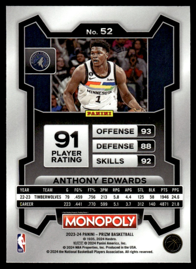 2023-24 Panini Prizm Monopoly Anthony Edwards Minnesota Timberwolves #52