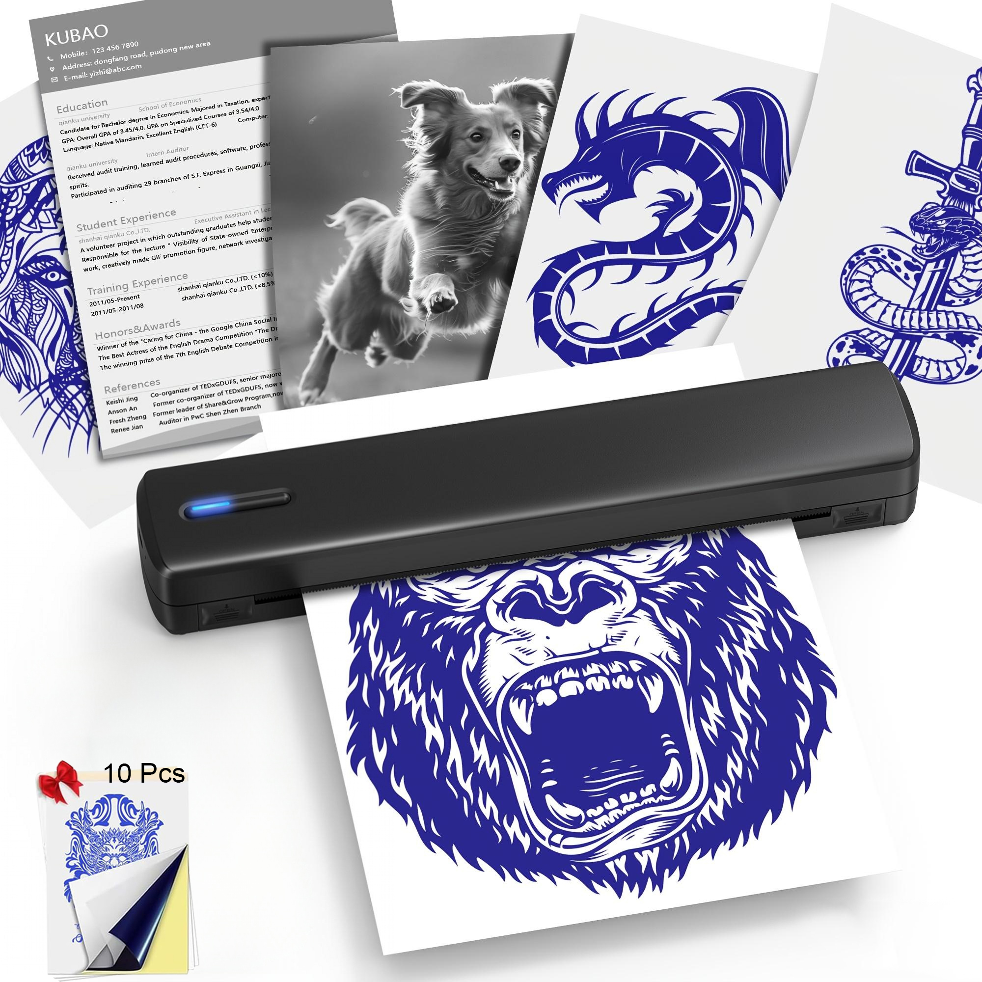 💡【Compact and Versatile】:This Printer Need to use Thermal Paper and DO NOT support regular copy paper. This Portable printer is small in size and weighs only 1.78 pounds. This portable A4 thermal printer offers a convenient printing solution for your mobile and stationary needs. It's and compact, making it perfect for use in the Office, Home, Car, ect. .This printer is also a tattoo stencil printer to print tattoo stencil paper. Please always remember to choose the paper size arroding to the paper you use both on Phone and PC.