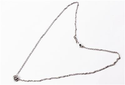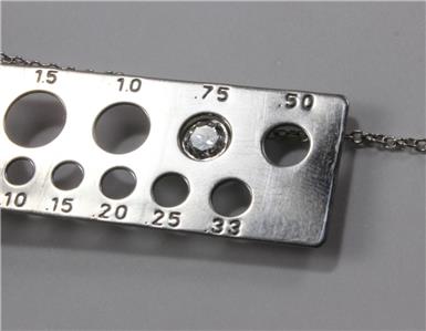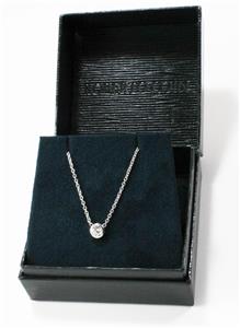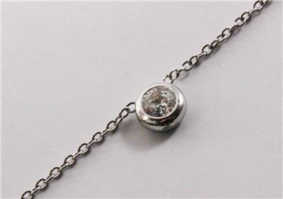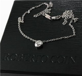 Authentic Roberto Coin 18K white gold (SI1 clarity, G color) bezel set solitaire diamond necklace pendant. It is properly hallmarked, "14KT Italy" "*1226VI", no hidden ruby as it is an earlier production. Item total weight is approximately 3.80 grams and the pendant measures approximately 7.45mm (0.29 inch) in diameter. The chain is approximately 16 inches long. The diamond is between 0.5-0.75ctw (SI clarity, G color) according to my measurement stick, see last two photos for details. I am listing it as 0.5ctw. Item comes in a Roberto Coin gift box as shown.