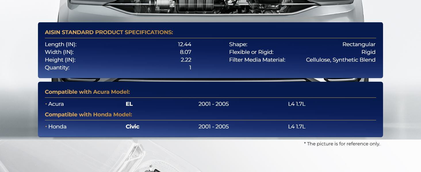 AISIN ARFH-01538 Engine Air Filter for Honda Civic Acura EL 2001-2005 L4 1.7L