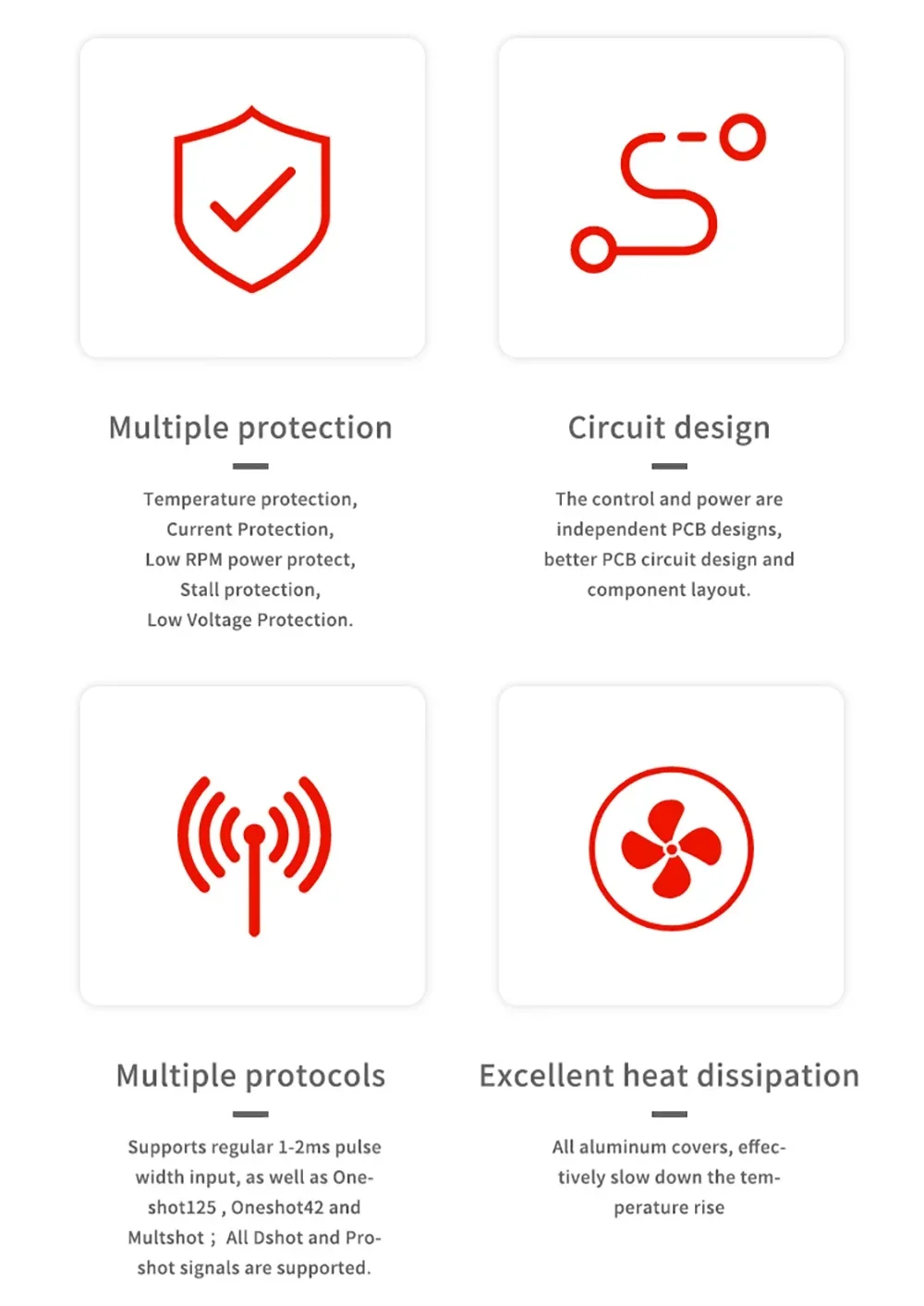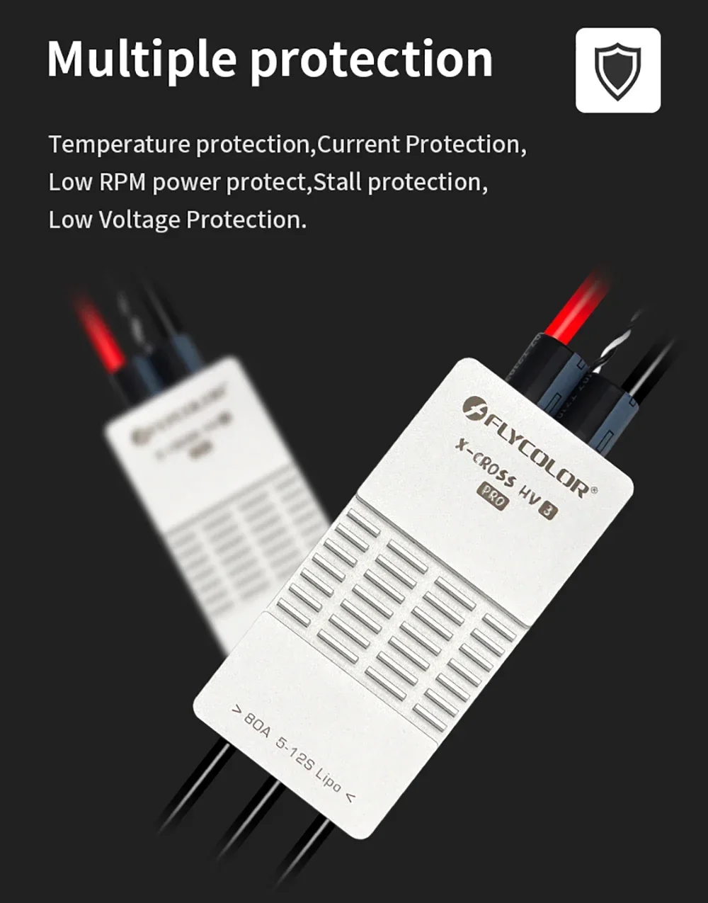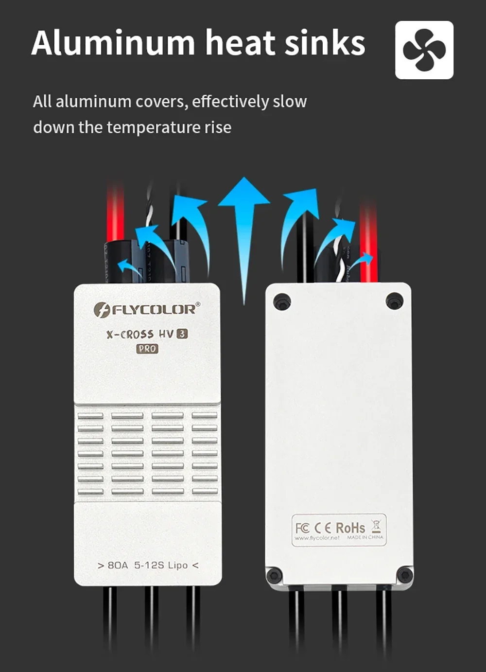 Flycolor 80A/200A ESC Brushless X-CROSS HV3 PRO 5-12S ARM 32-bit No BEC Electric Speed Controller for RC Airplane Drone Model Upgrade Parts Features: 1. High Performance: 80A/200A electric speed controller, with the quality components. It is a wonderful upgrade replacement for broken or old one, and it also can help improve the overall comprehensive performance. 2. Multiple Protections: It can better provide comprehensive protection such as temperature protection,current Protection,low RPM power protect,stall protection,low voltage protection. Safe and reliable to use, meet your needs. 3. Unique Circuit Design: The control and power are independent PCB designs, better PCB circult design and component layout. Special designed for RC plane, can help better control your RC models. 4. Multiple Protocols: Supports regular 1-2ms pulse width input, as well as One-shot125, Oneshot42 and Multshot ; All Dshot and Pro-shot signals are supported 5. Excellent Heat Dissipation: Use aluminum alloy case for better heat dissipation effect, effectively slow down the temperature rise, which makes ESC more durable.