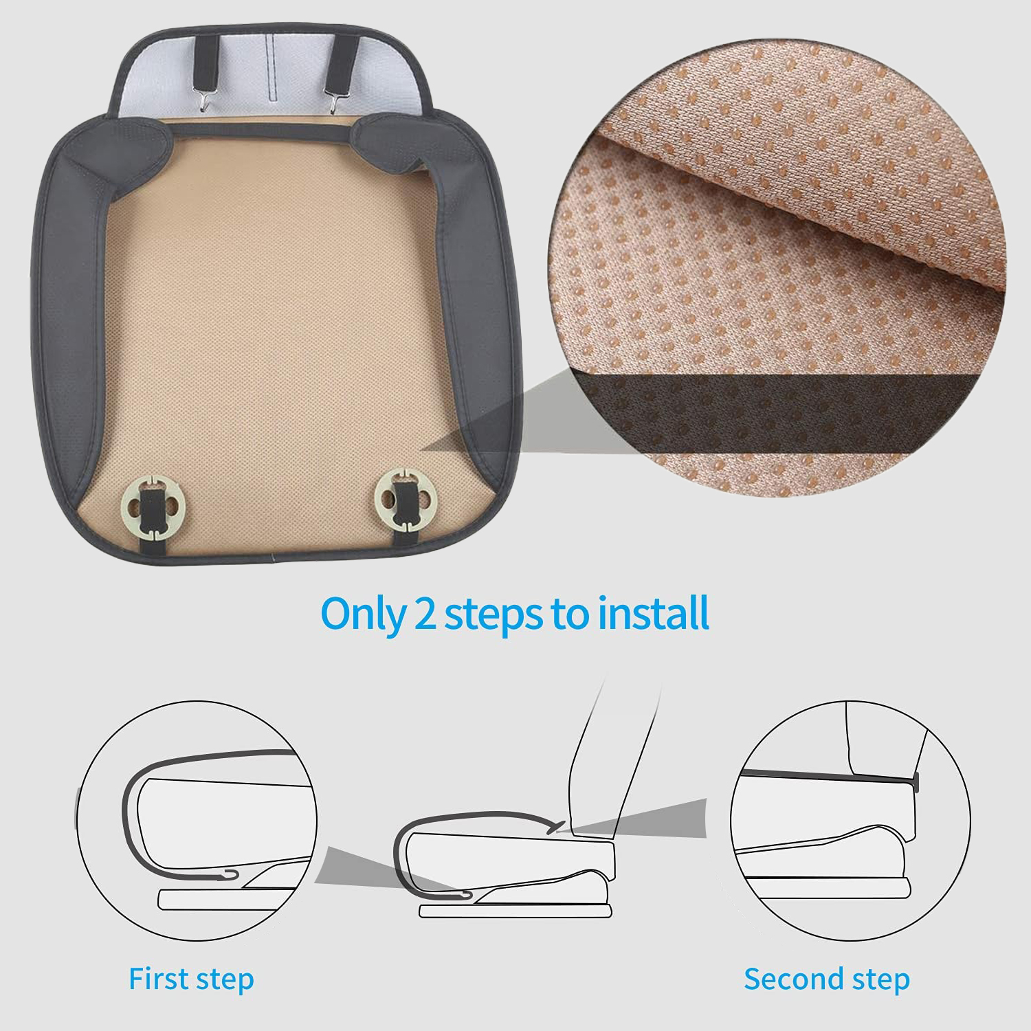 The car seat pad contains instructions and detailed picture illustration of installation steps.