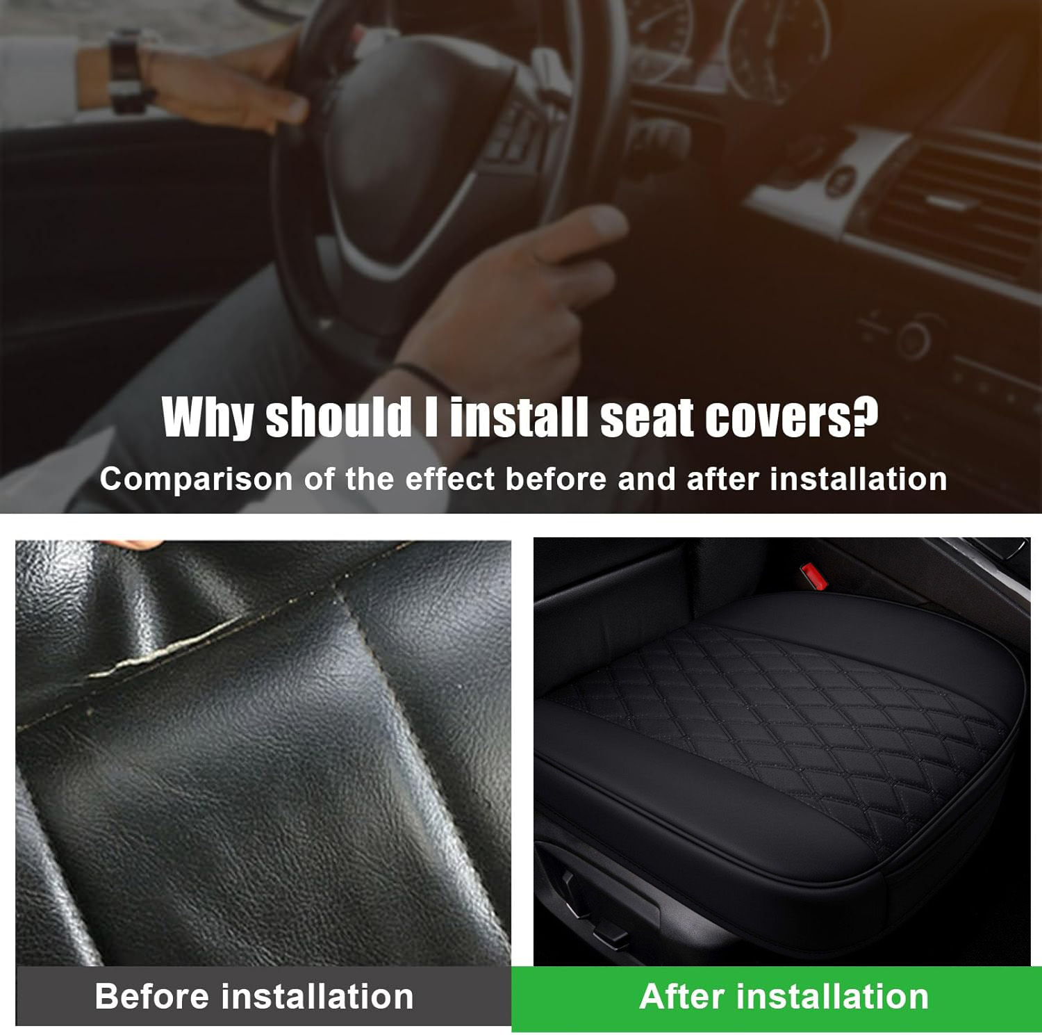 The auto seat cover is made of high-grade soft PU leather, waterproof, easy to scrub, durable and good breathability. Built-in a layer of highly flexible sponge, four seasons applicable.