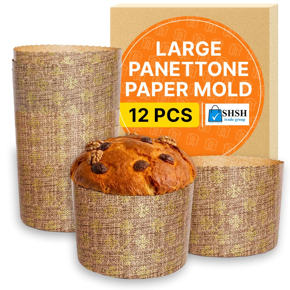 Panettone Mold W 5.32-Inches x H 4-Inches, 540 gr, 19 oz. Pack of 12 Easter Bread Paper Mold. Panettone paper molds for baking are made of moisturizing and special food parchment that does not need additional pre-grease. The double non-stick bottom of the baking cups makes sure your baked goods do not stick.