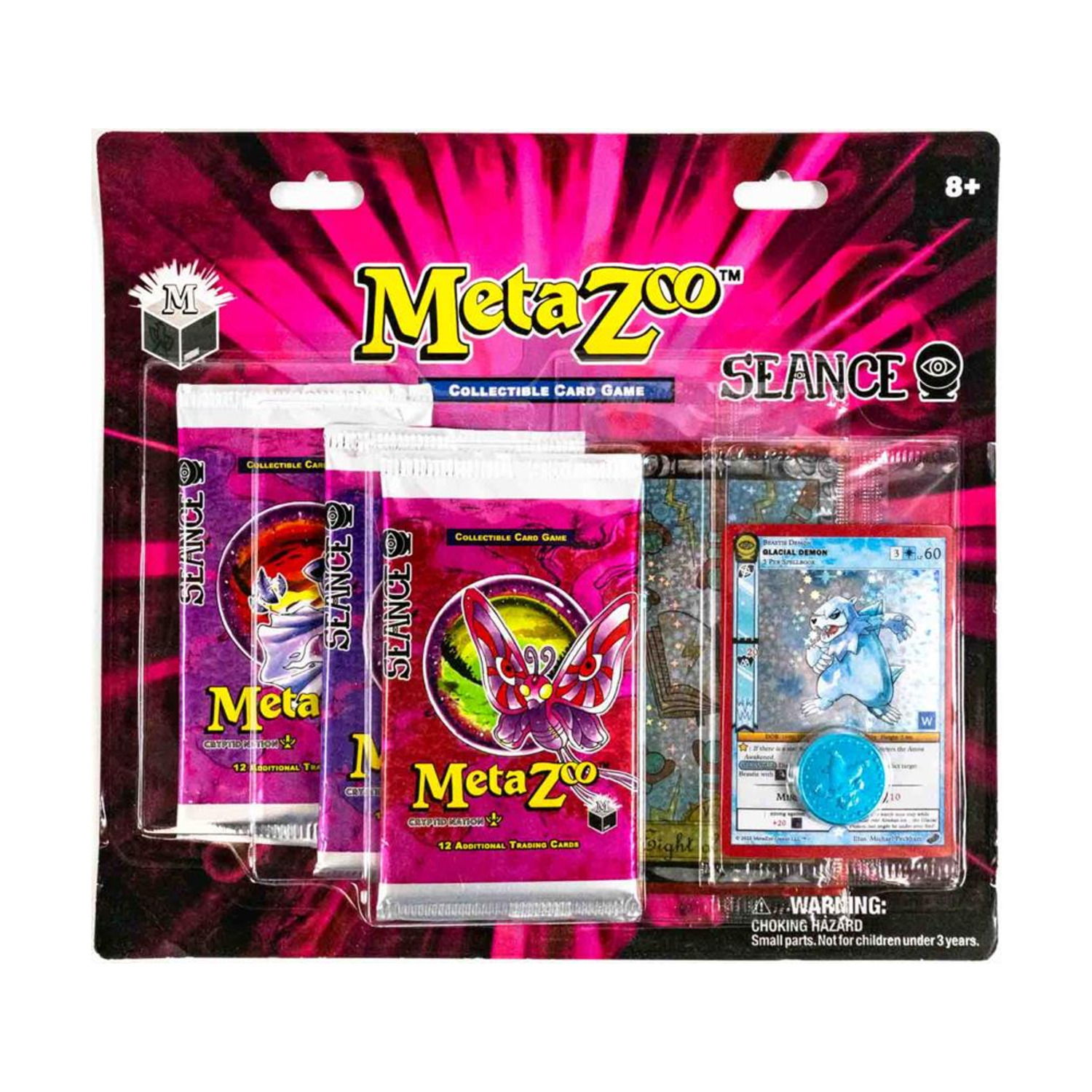 This blister pack contains 3 Seance booster packs, a random MetaZoo Foil Tarot card, and a special foil promo card with coin.