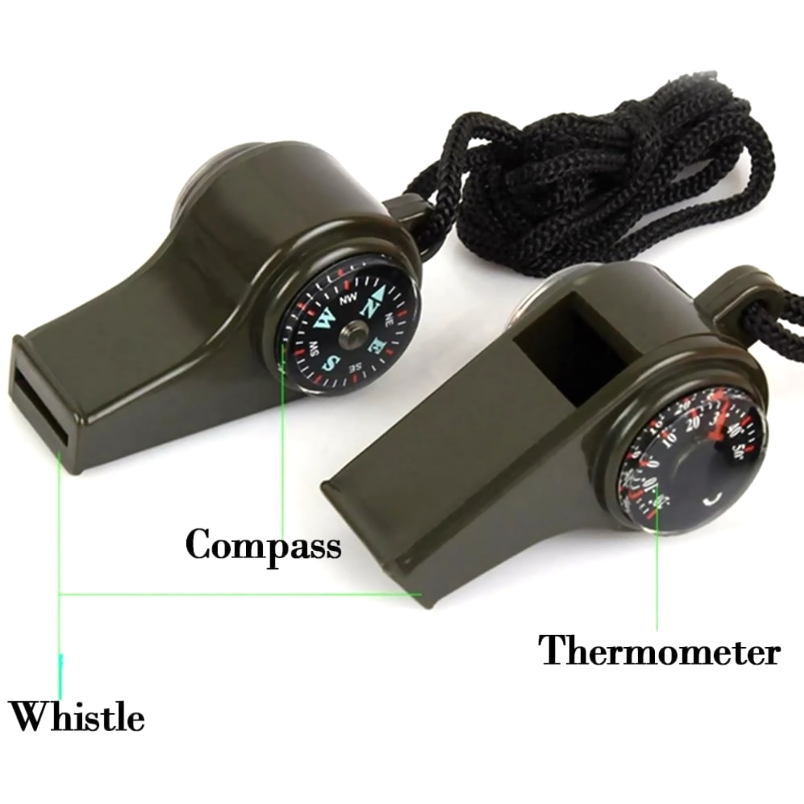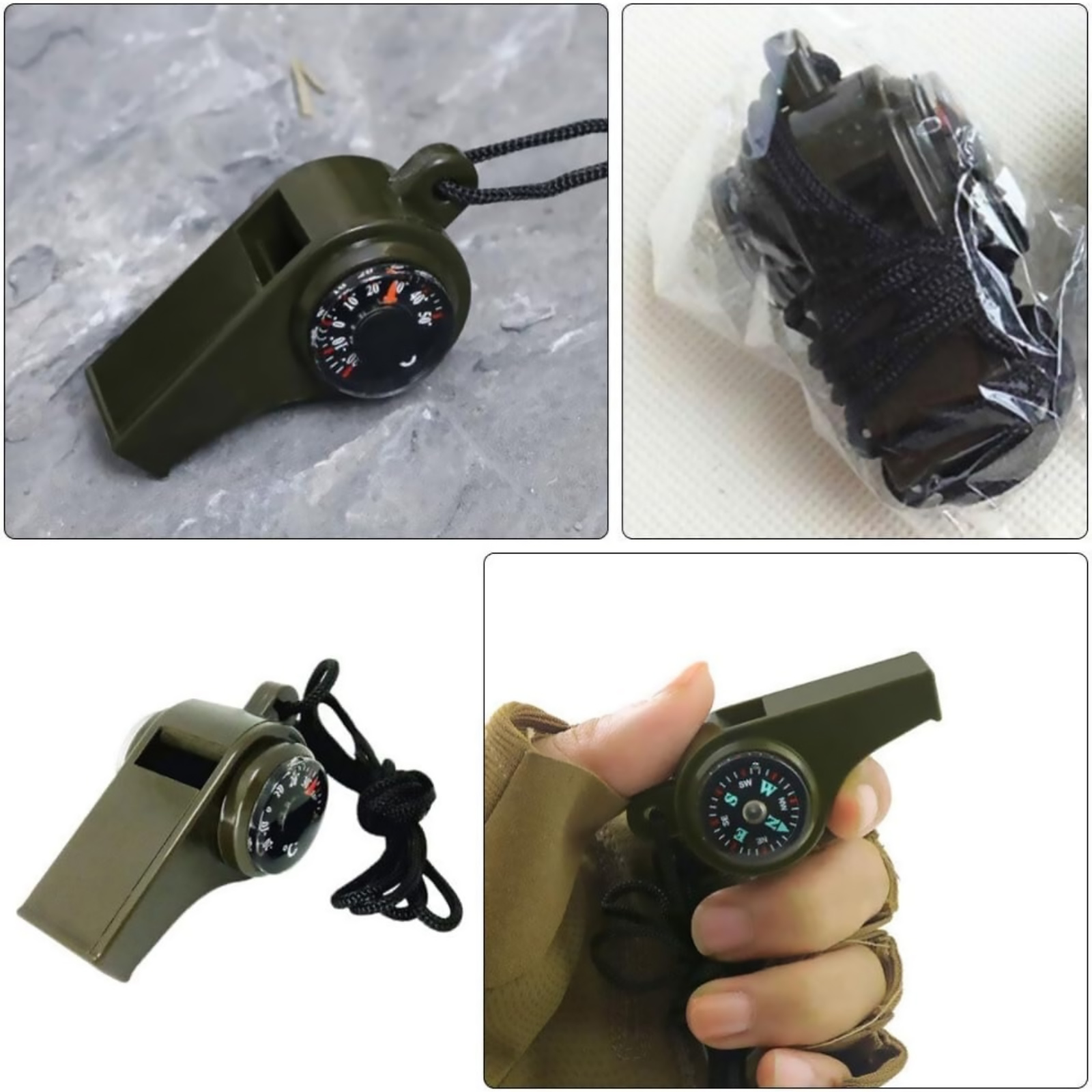 Features: 1. 3-In-1 Multi-Function Survival Tool: Combines A Loud Whistle, Precision Compass, And Easy-To-Read Thermometer In One Compact Unit. Eliminates The Need To Carry Multiple Gadgets, Making It The Ultimate Space-Saving Essential For Any Bug-Out Bag Or Hiking Pack 2. Loud Alarm For Emergencies: Generates An Ear-Piercing Sound That Cuts Through Wind, Rain, And Background Noise, Ensuring Your Distress Signal Is Heard From Miles Away During Storms, Wilderness Emergencies, Or Urban Crises 3. Double The Safety With 2 Packs: This Practical Set Includes Two Complete Whistles. Keep One On Your Person And Store The Other In Your Car, Backpack, Or Give To A Companion. Perfect For Ensuring Both You And Your Partner Are Prepared 4. Ready-To-Use & Built To Last: Each Whistle Comes With A Breakaway Safety Lanyard For Easy Attachment To Keys, Backpacks, Or Life Vests. Made From Durable, Weather-Resistant ABS Plastic, It Performs Reliably In Extreme Temperatures And Harsh Conditions 5. Versatile For Any Adventure: An Indispensable Gear Not Just For Hiking, Camping, And Backpacking, But Also For Emergency Preparedness Kits, Boating, Jogging (Personal Safety), Automotive Breakdowns, And Teaching Kids About Outdoor Safety Specifications: Type: 3-In-1 Loud Safety Whistle Condition: 100% New Material: ABS Plastic Packaging Includes: 2* Whistles