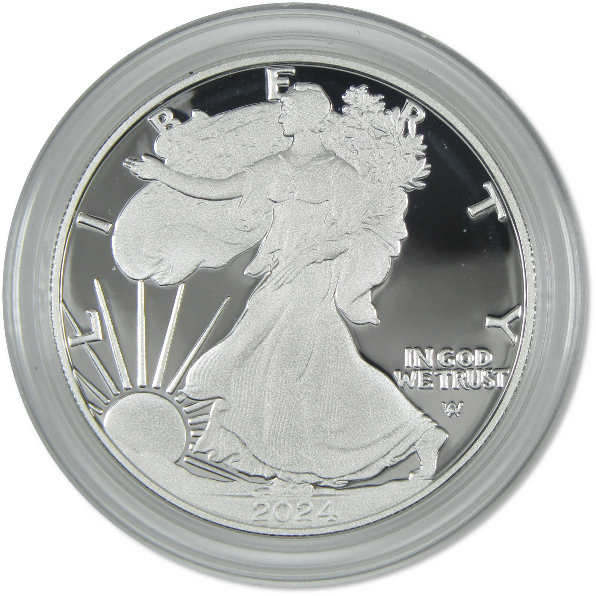 A genuine 2024 S American Eagle Silver Dollar Bullion Coin, in Choice Proof Condition. Contains 1 oz 0.999 Silver. Comes with the original government packaging, including a certificate of authenticity