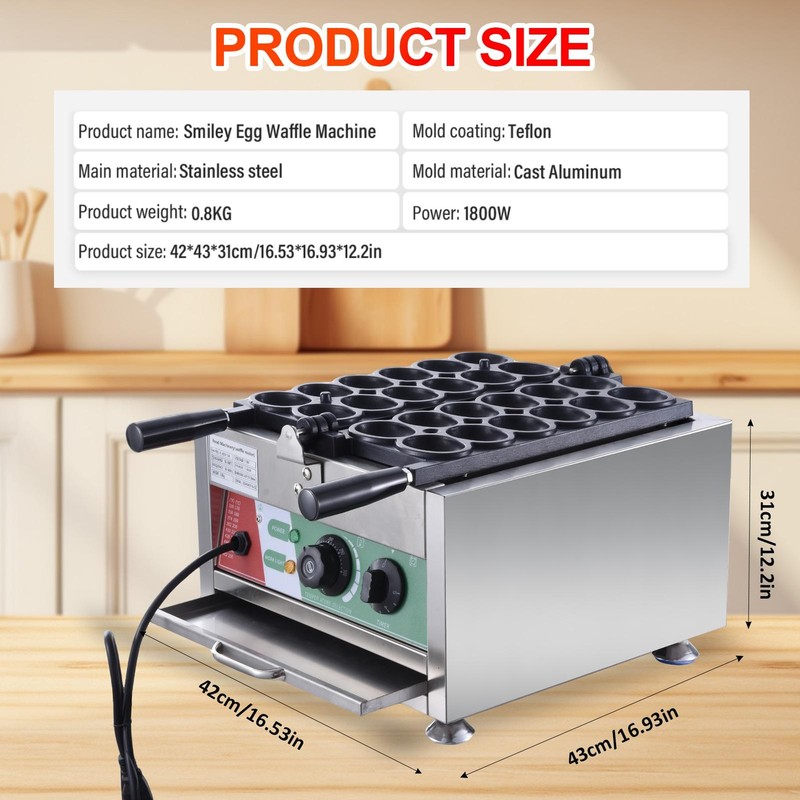 Enhanced Performance: The waffle ball maker boasts a robust stainless steel body and a reinforced handle, ensuring maximum stability and safety for prolonged use