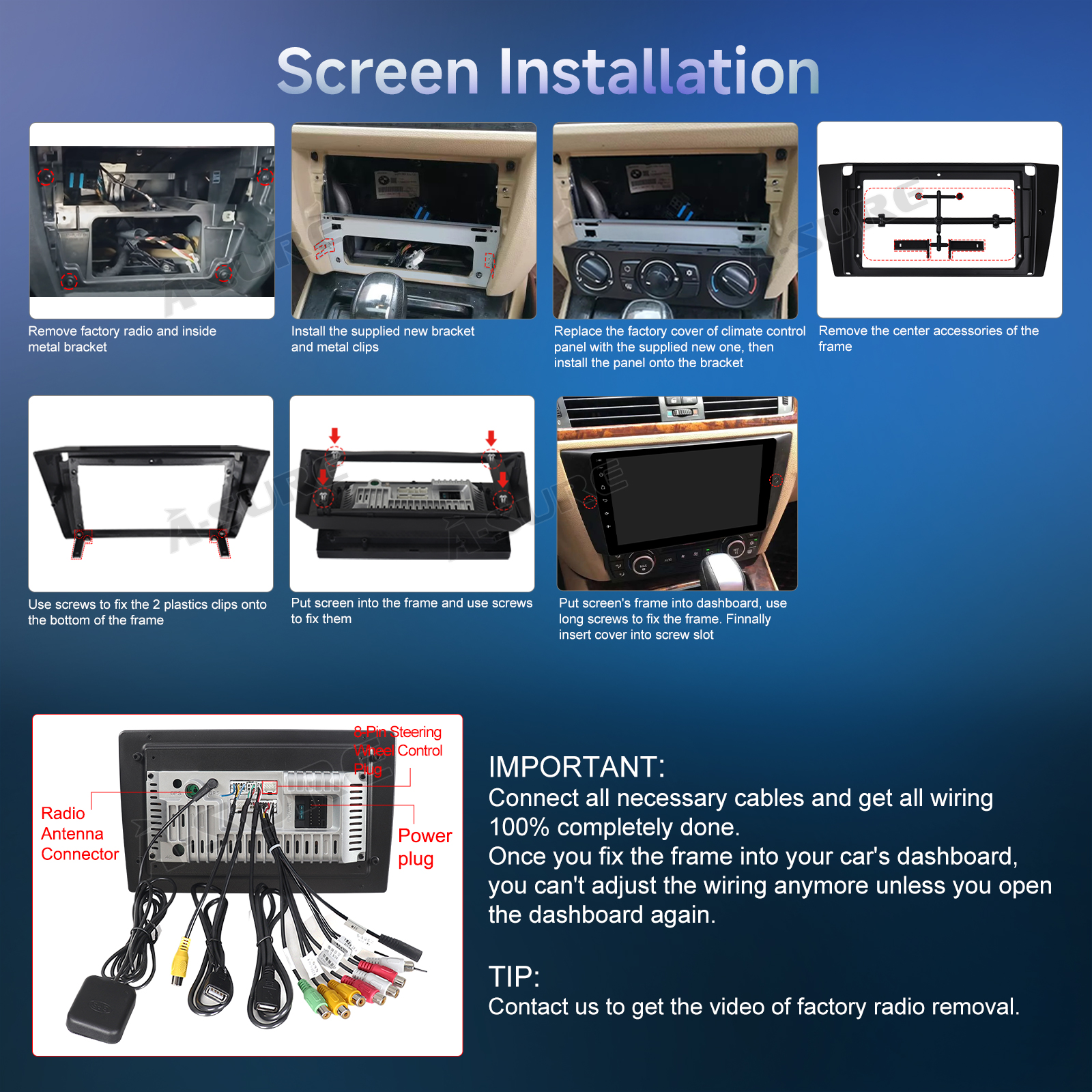 RDS/FM Radio & Bluetooth & ASP Sound: Supports Bluetooth 4.1, with built-in microphone so you can make hands-free calls while driving. Support access to phone book, music playback interface, etc. RDS supported. You can save 18 FM radio stations. Built-in ASP chip. Supports 32-band EQ setting, which can be adjusted according to your personal preference. Which is very similar to your original sound. 4 x 45W amplifier, surround sound and subwoofer output