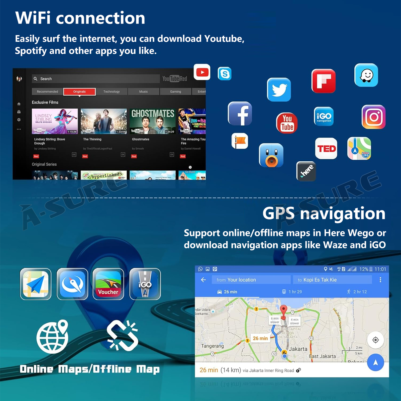 Navigation System & WiFi: Support WiFi connection. After connecting the WiFi, you can download any APP from App Store, e.g. B. Youtube, Tik Tok, Spotify, etc. Car stereo with GPS, accurate positioning, stable signal, support using online or offline maps, no longer worry about getting lost when you are driving. Independent antenna ensures strong WiFi reception.