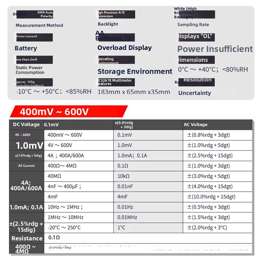 DC Voltage: 400mV~600V