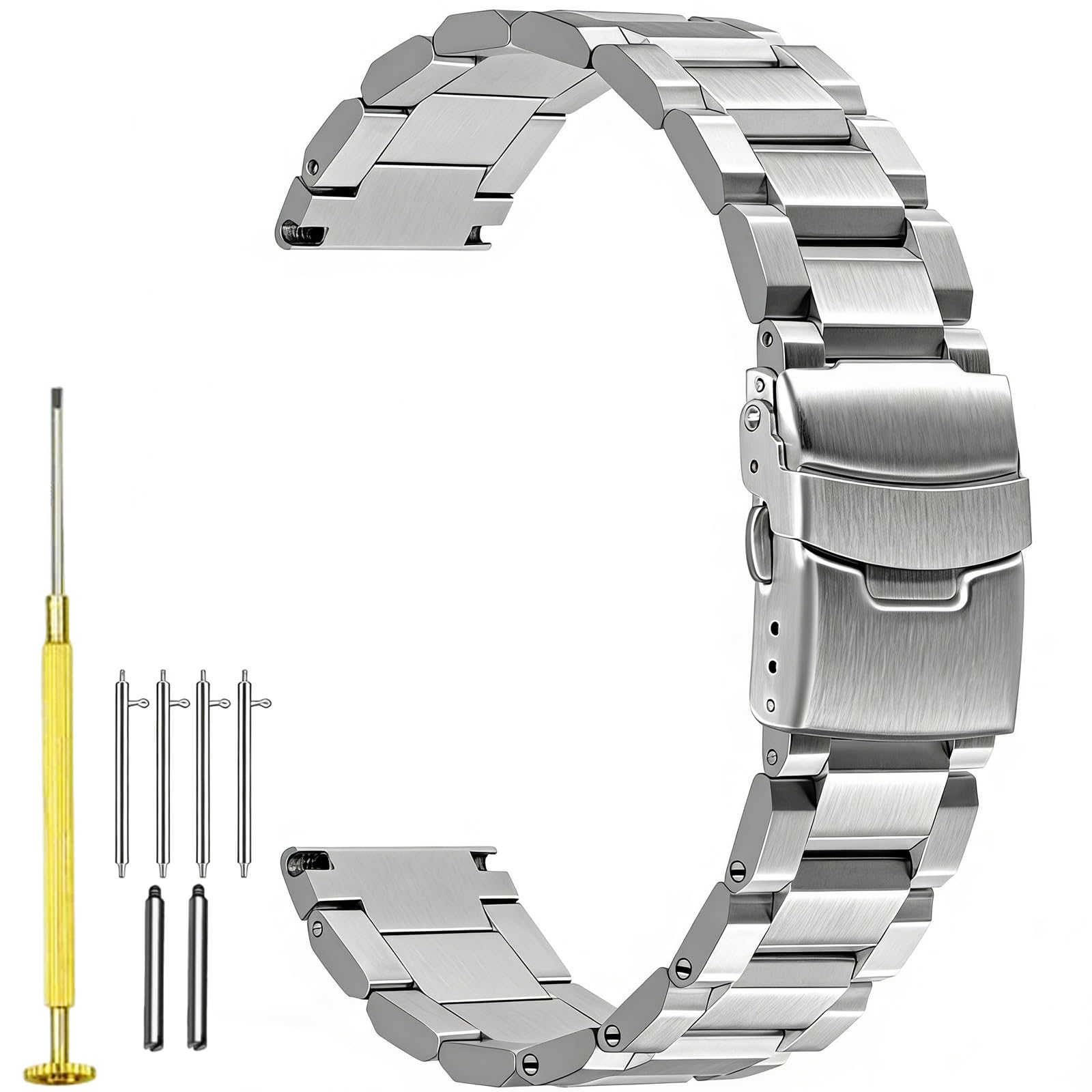 Juntan 20mm Stainless Steel Watch Band Screw-in, Quick Release Metal Engineer Watch Straps Brushed for Men Women Silver Replacement Bracelet with Double Buckle