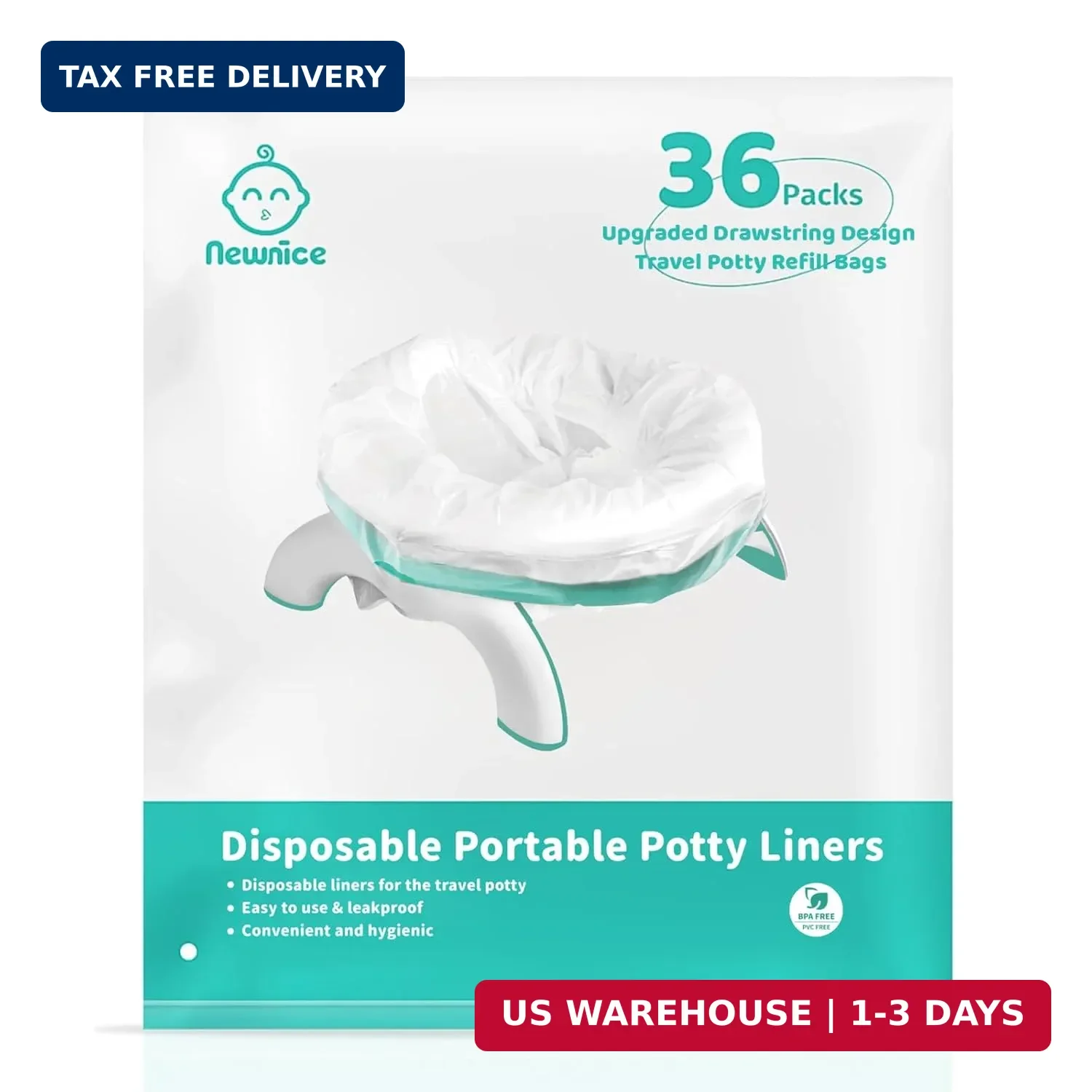 [36 Counts] Newnice Upgraded Drawstring Potty Liners with 20s Quick Absorb Pads,