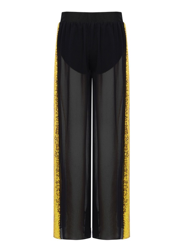 The elastic waistband on the pants ensures a secure and adjustable fit. The chiffon wide-leg pants provide a flowing and elegant appearance.