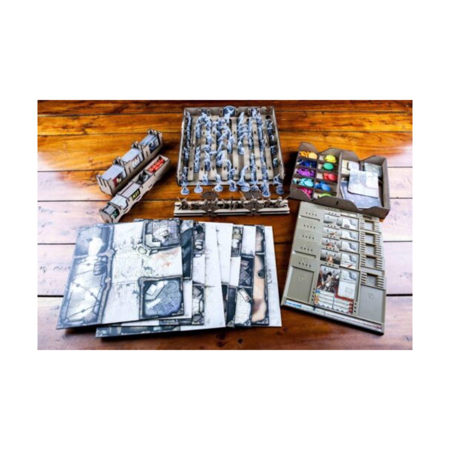 • 1x card holder for 60 micron (eg Sapphire) sleeved or not cards, additional card space for Wulfsburg expansion and any bonuses, removable dividers;