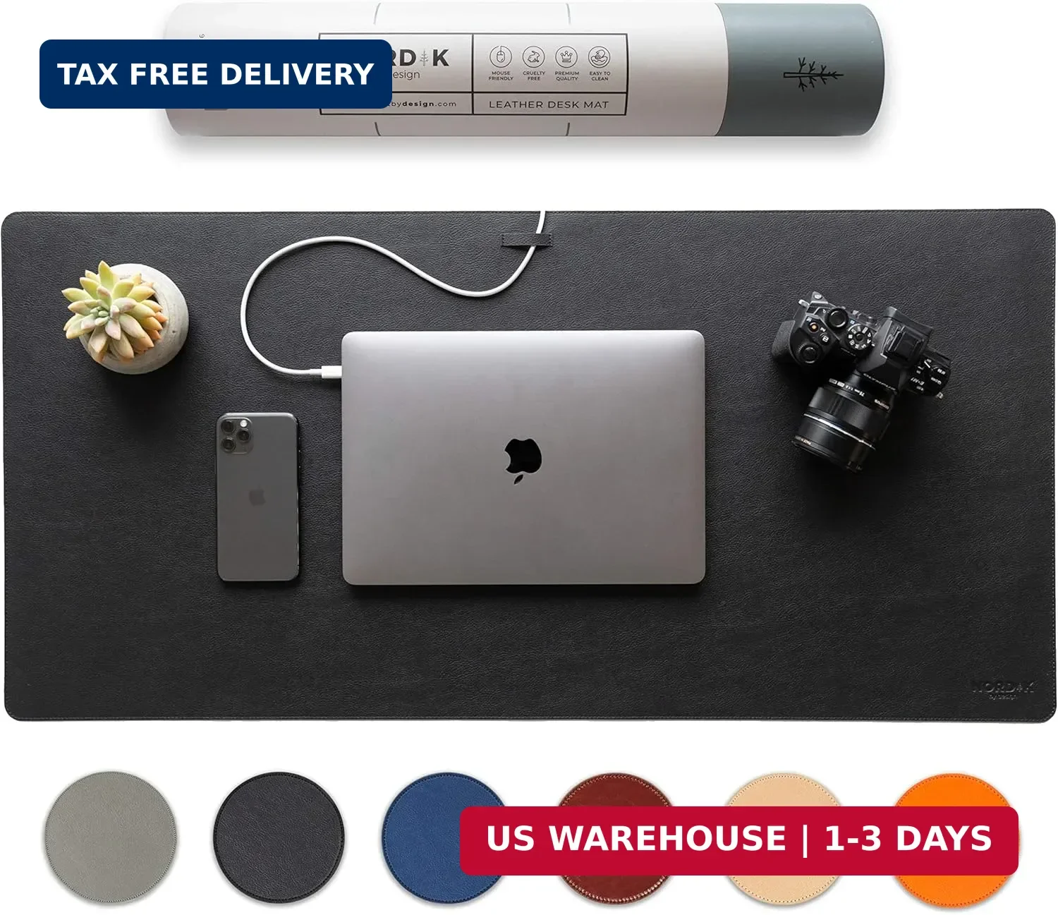 Nordik Leather Desk Mat Cable Organizer - Pebble Black 35 X 17 inch - Premium Mo